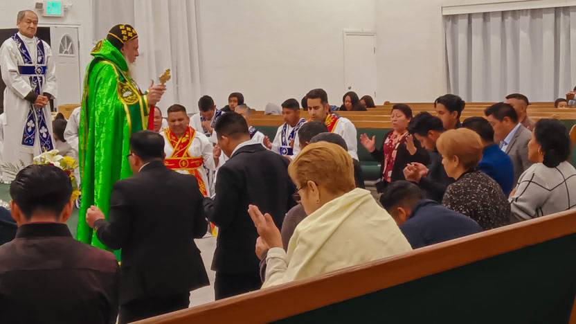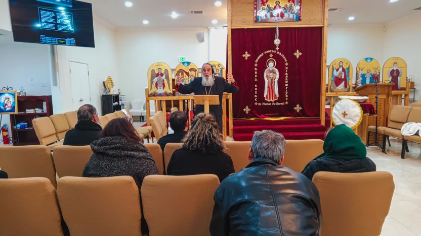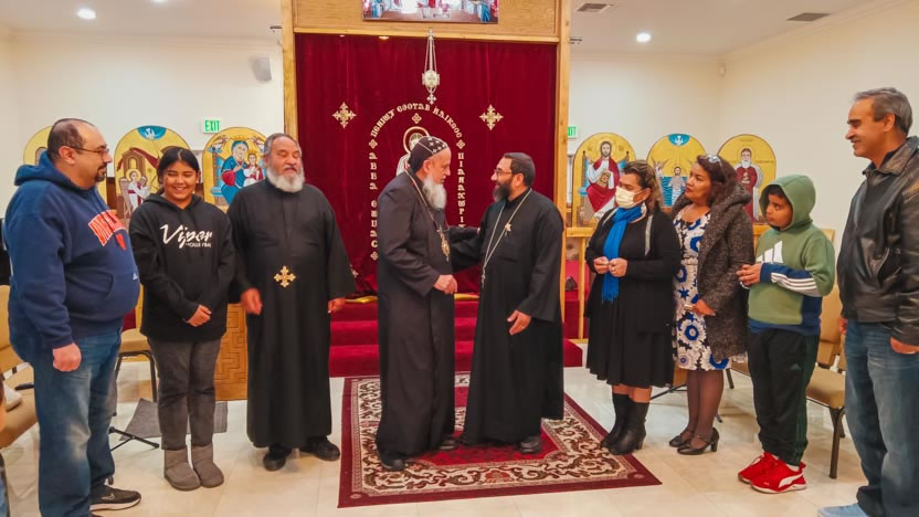 El domingo 19, por la tarde, después de un largo viaje, el arzobispo llegó hasta la parroquia copta de Santo Tomás Eremita, ubicada en la ciudad de Temécula.