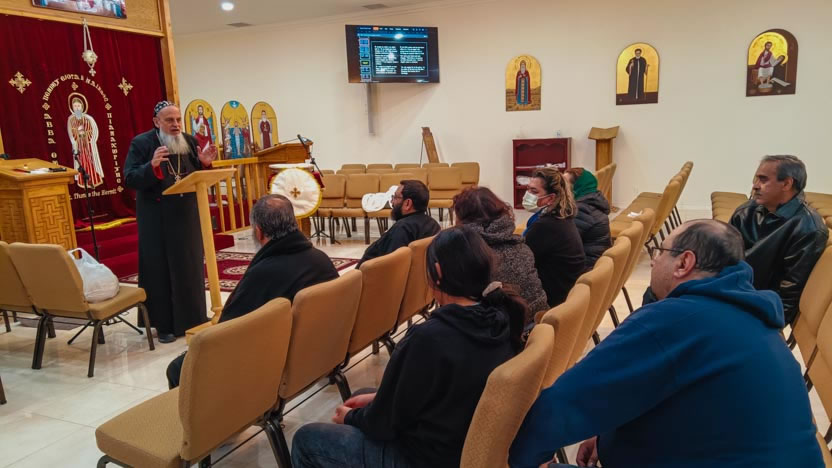 | 19: PLÁTICA DEL ARZOBISPO A LÍDERES DE LA COMUNIDAD HISPANA DE LA PARROQUIA COPTA DE SANTO TOMÁS. |