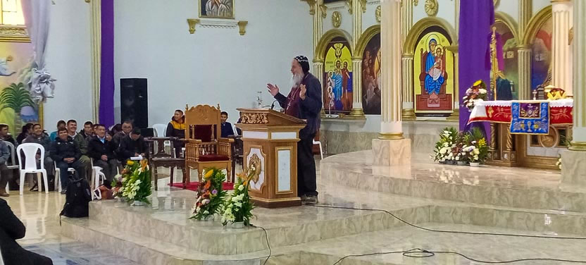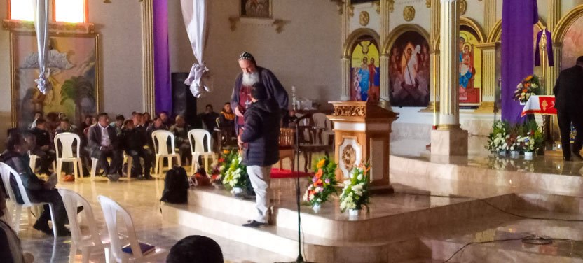 Los hermanos participaron con profunda fe y devoción y participaron en buen número en la comunión con los divinos misterios. Seguidamente, el arzobispo emprendió una larga caminata para alcanzar el lugar hasta donde podía llegar el vehículo. |