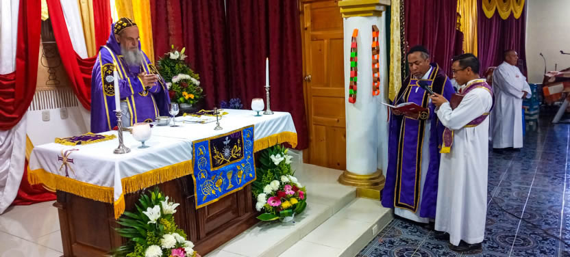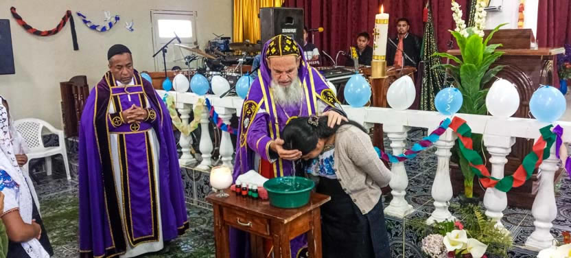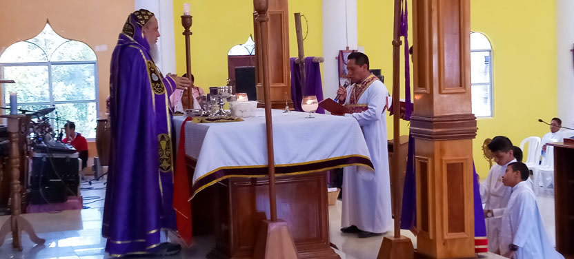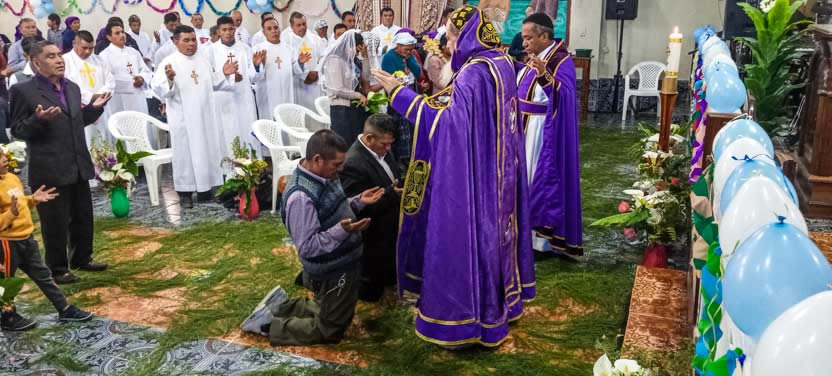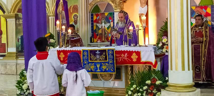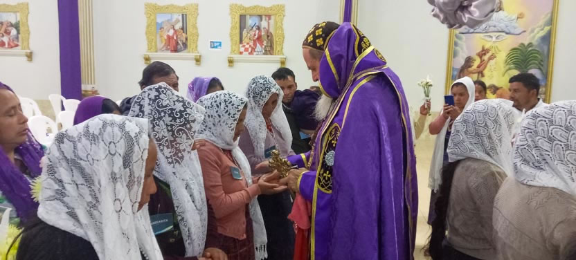 La actividad en la Parroquia de San Mateo Apóstol de San Mateo Ixtatán, concluyó con la celebración de la divina liturgia, presidida por el arzobispo y concelebrada por el padre Marcos Caicedo, párroco local.