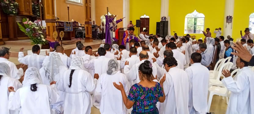 Después de la homilía, se hizo la institución y la renovación de la institución para unos cincuenta ministros para la distribución de la comunión de las cinco parroquias del decanaato del centro de Huehuetenango.