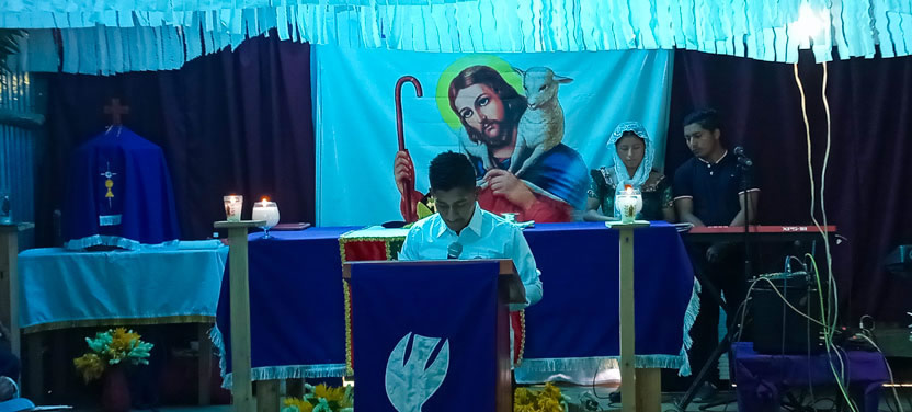 | 30: DIVINA LITURGIA CON LOS HERMANOS DE LA COMUNIDAD SDE MIRADOR POJOM, SANTA CRUZ BARILLAS, HUEHUE. |