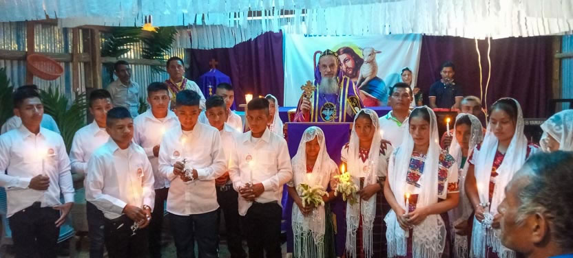 Finalmente, el arzobispo presidió la celebración de la divina liturgia con los hermanos de la comunidad de El Mirador Pojom, de Santa Cruz Barillas, Huehuetenango.