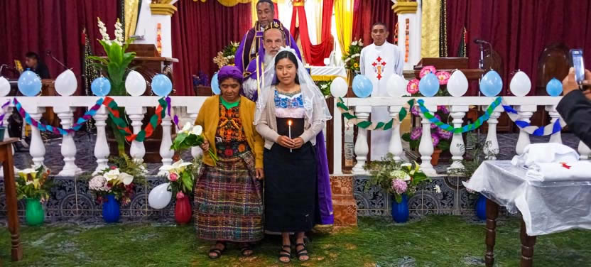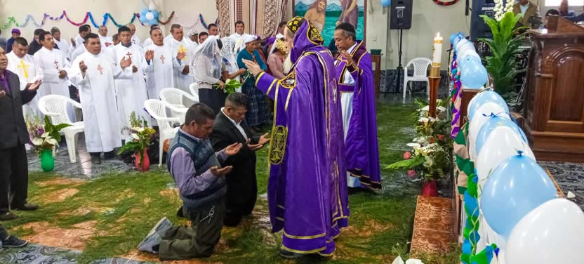 También, dado que el arzobispo hacía la primera visita a la Comunidad de El Mirador Pojom, de Santa Cruz Barillas, Alonso y Angelina celebraron su matrimonio.