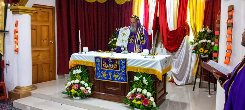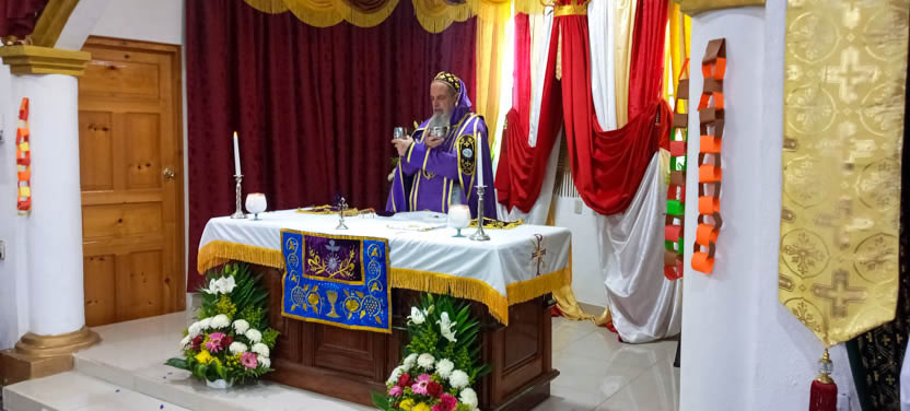 Las actividades del arzobispo en Santa Eulalia, concluyeron con la celebración de la divina liturgia, presidida por él y concelebrada por los padres Julio y Juan Arcadio.