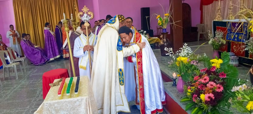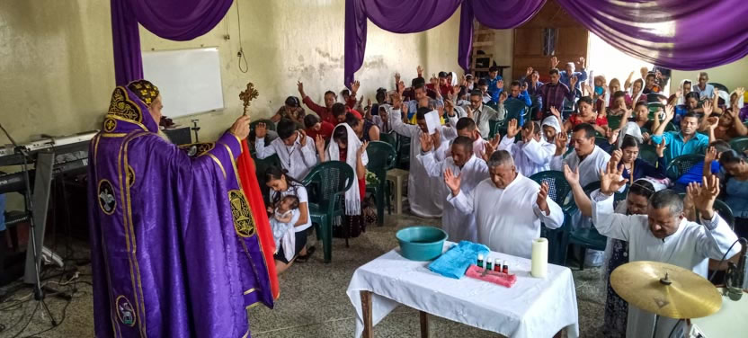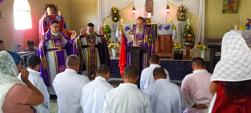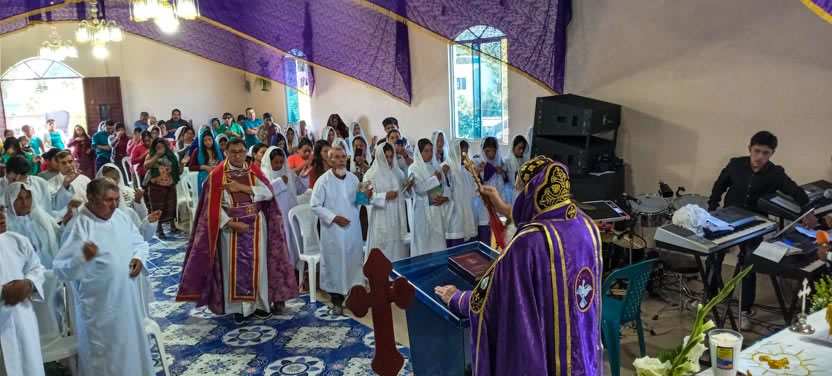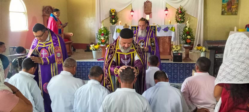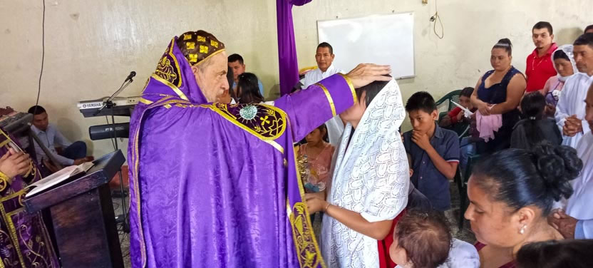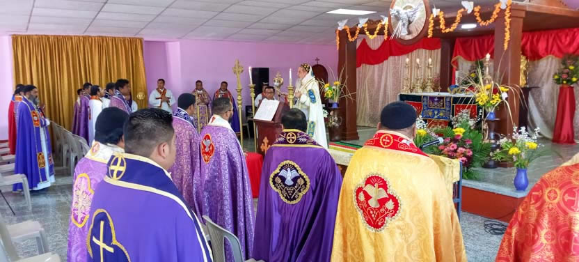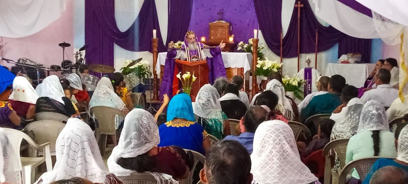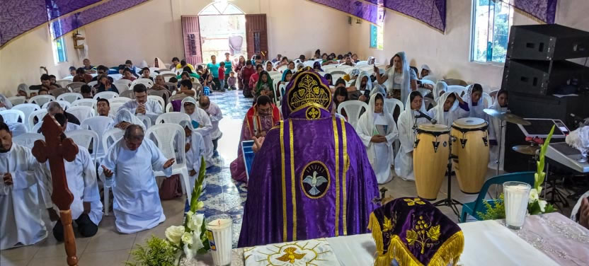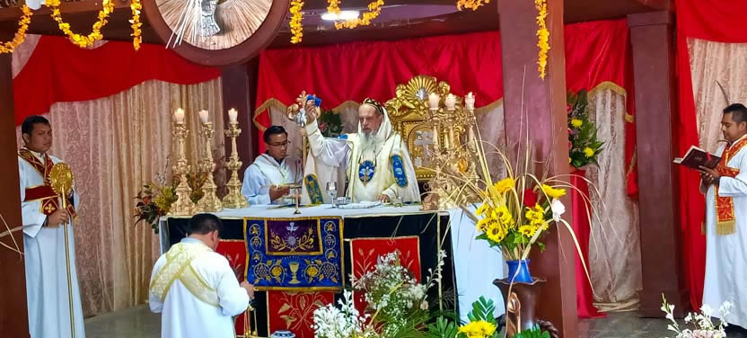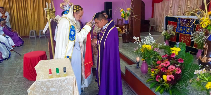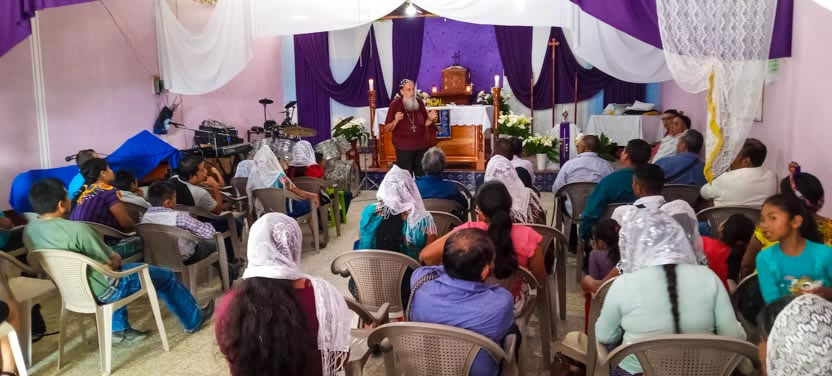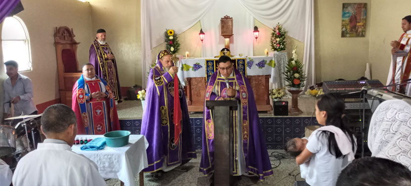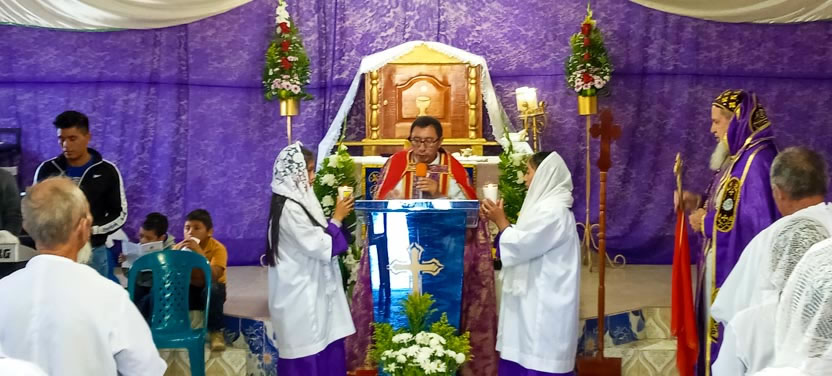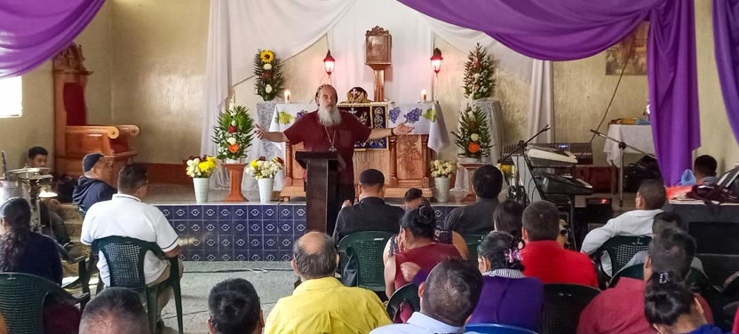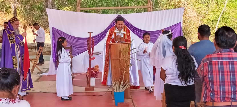 La actividad pastoral del lunes santo, culminó con la celebración de la divina liturgia en el Centro Pastoral de Petatán, Huehuetenango.