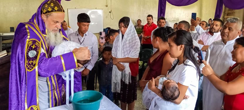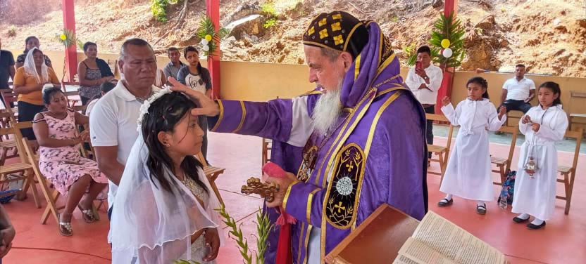 La actividad en la comunidad Santísima Trinidad de Concepción Huista, culminó con la celebración de la divina liturgia, presidida por el arzobispo y concelebrada por el padre Santo, párroco local.