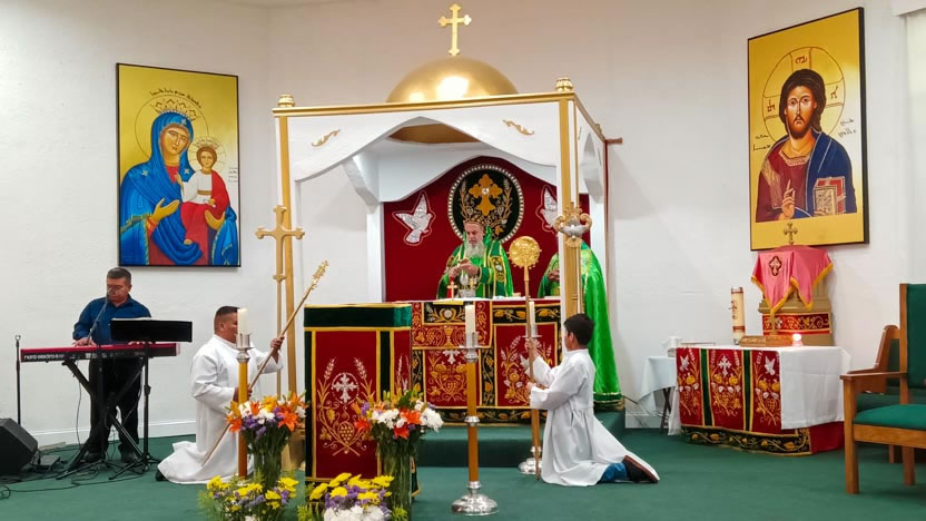 Seguidamente, el arzobispo presidió la celebración de la divina liturgia, la cual fue concelebrada por el Padre Jorge.