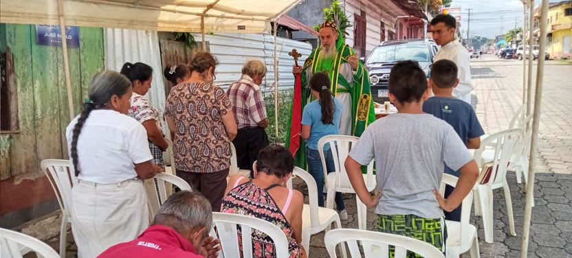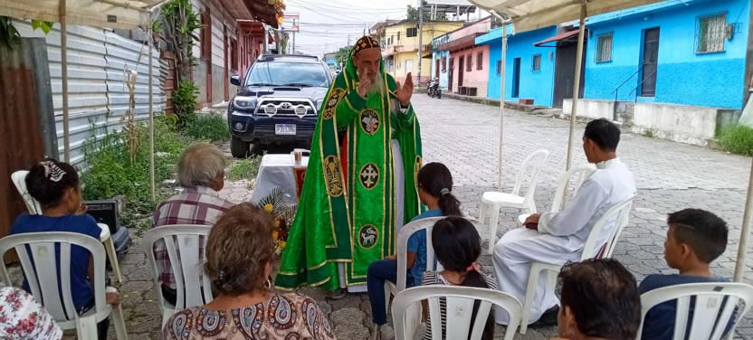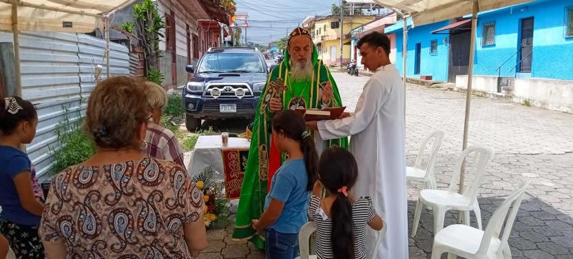 Finalmente, con el pequeño grupo de hermanos, el arzobispo, en una calle, presidió la celebración de la divina liturgia.