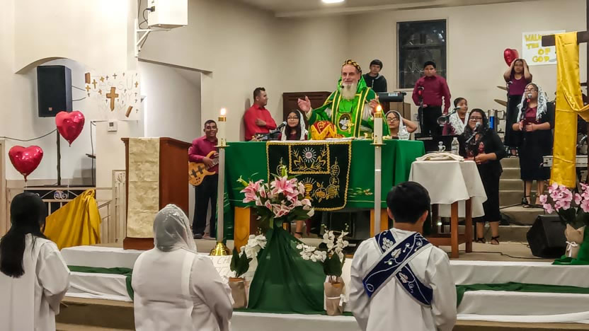 Finalmente el arzobispo presidió la celebración de la divina liturgia, para los miembros de la comunidad El Pescador.