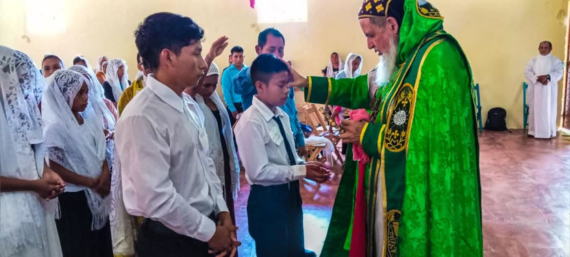 Con ocasión de la visita del arzobispo, se administraron los sacramentos de la iniciación cristiana a siete niños de la comunidad.