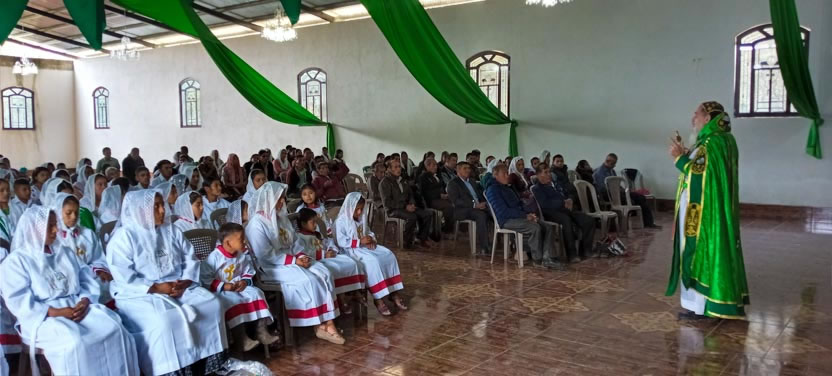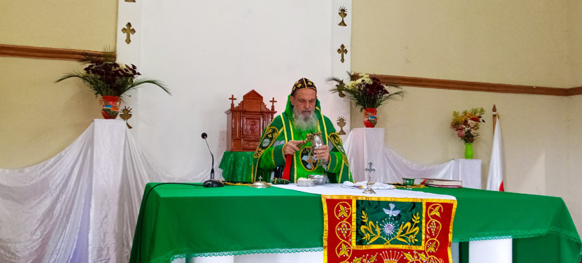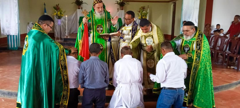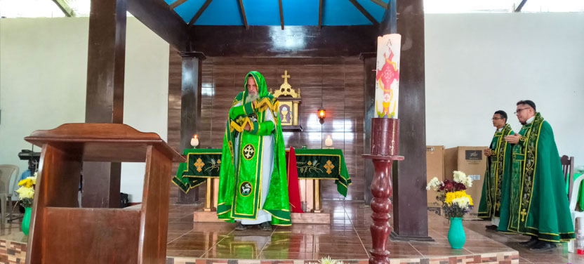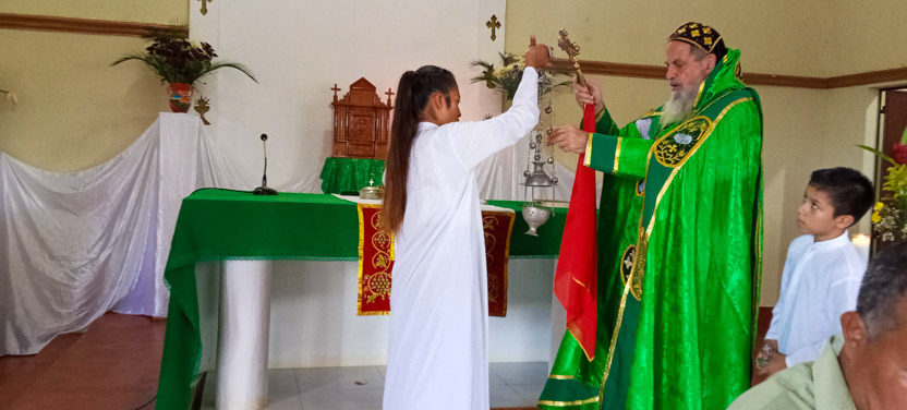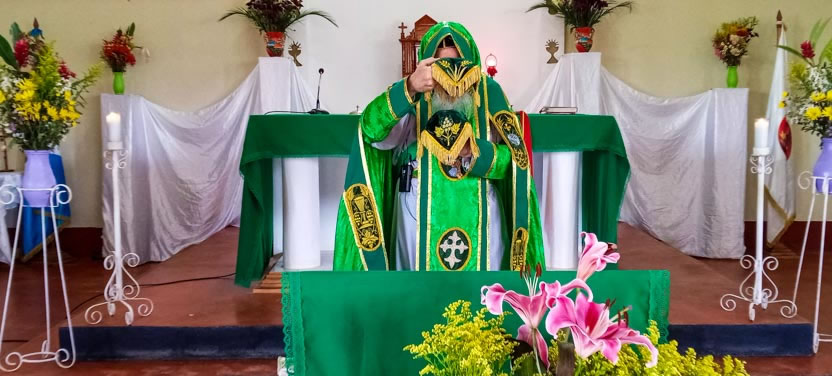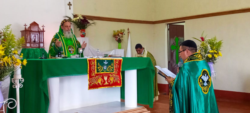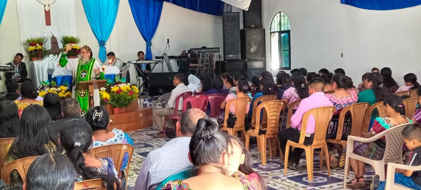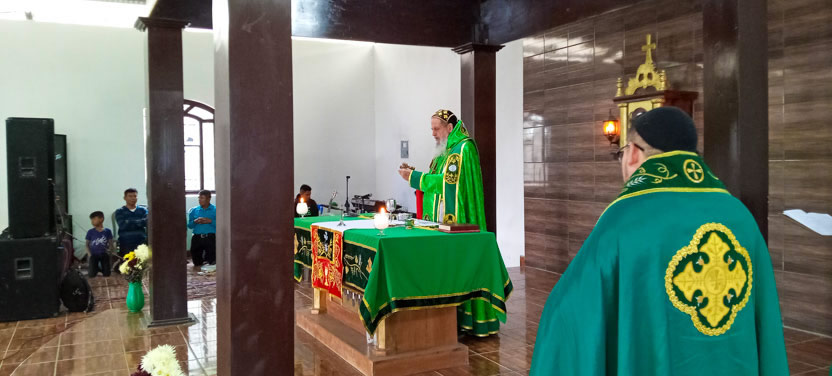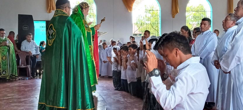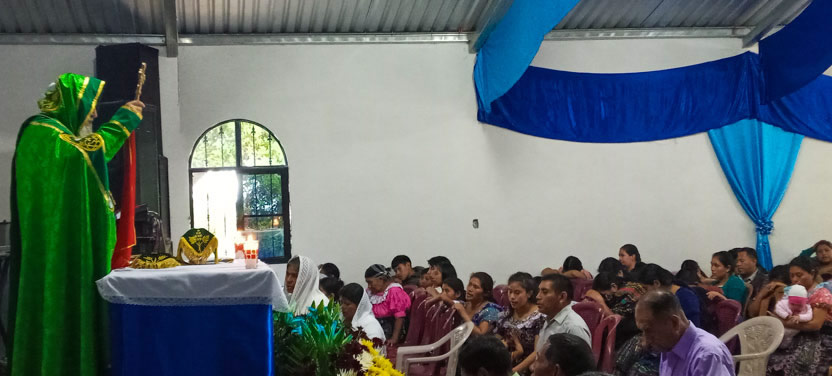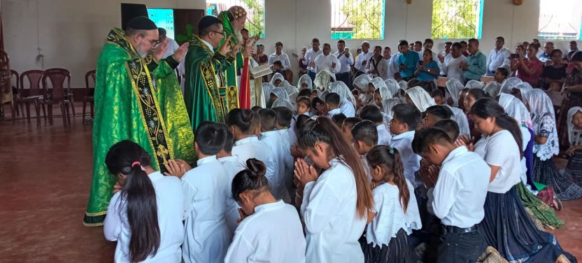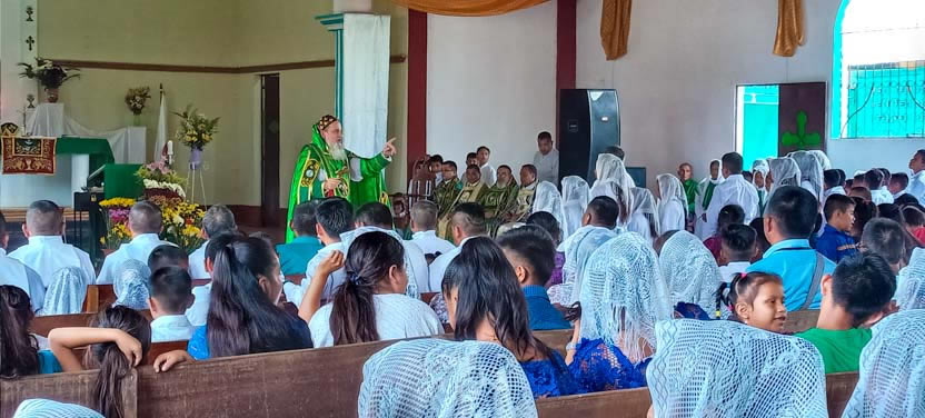 Seguidamente, el arzobispo presidió la celebración de la divina liturgia con los hermanos del centro pastoral de Las Anonas, Chicamán.