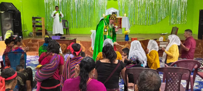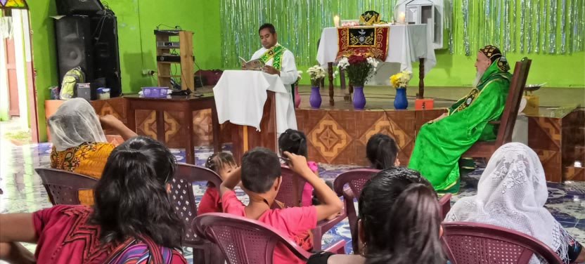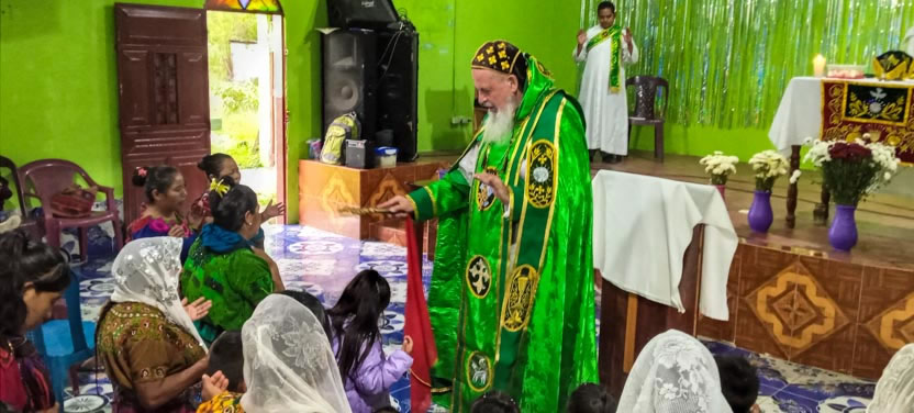 | 11: DIVINA LITURGIA CON LOS HERMANOS DE LA COMUNIDAD DE EL ARENAL, SAN GASPAR IXCHIL, HUEHUETENANGO. |