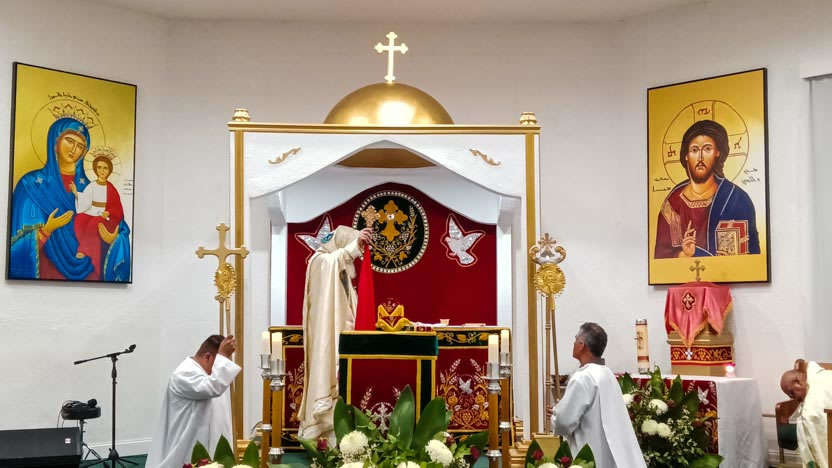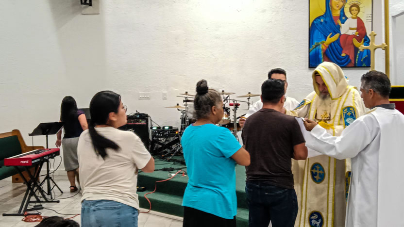 Seguidamente, el arzobispo presidió la celebración de la divina liturgia, la cual fue concelebrada por el padre Jorge Cerda.