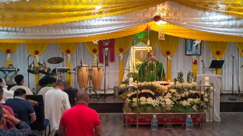 En la noche del miércoles 23 de agosto, el arobispo llegó hasta la sede de la comunidad Pacto Divino, en el centro de Los Ángeles, para hacer la visita mensual.