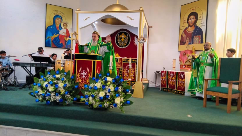 La visita a la comunidad poder del Espíritu Santo culminó con la celebración de la divina liturgia, presidida por el arzobispo.
