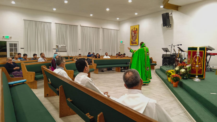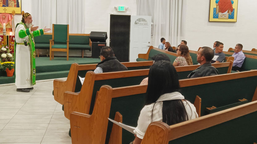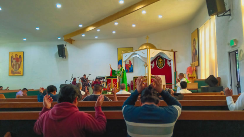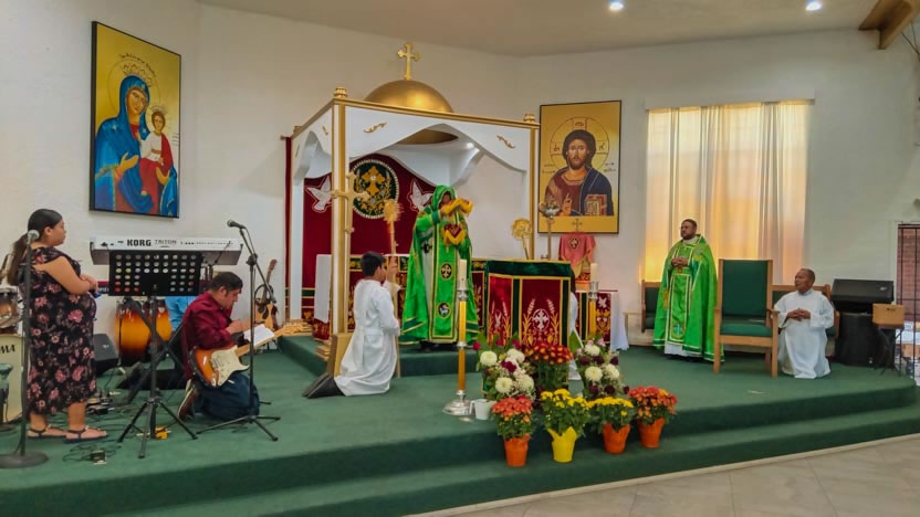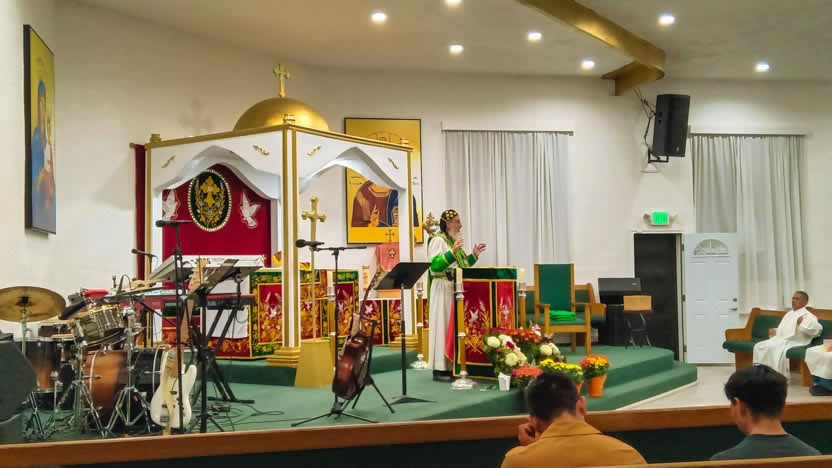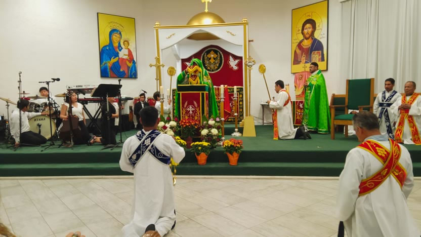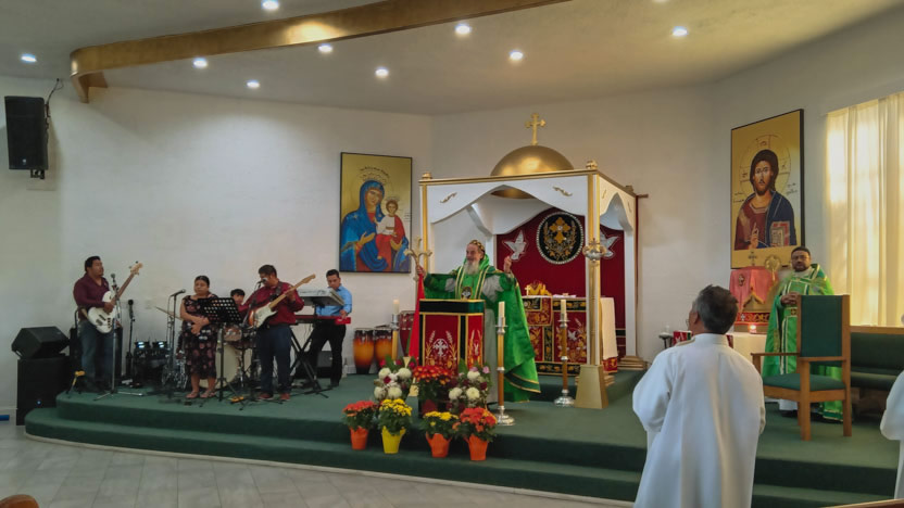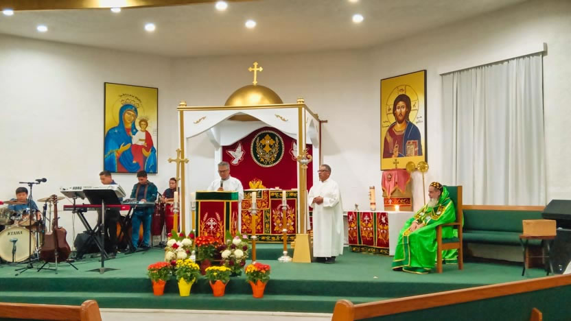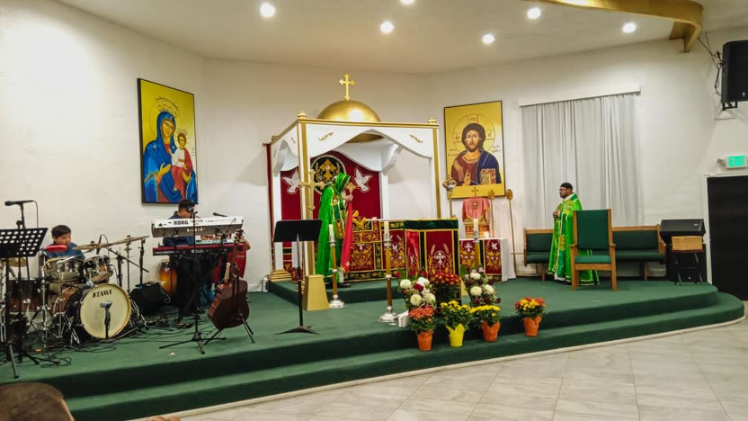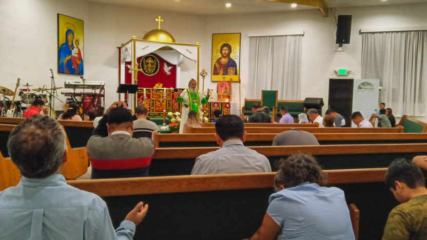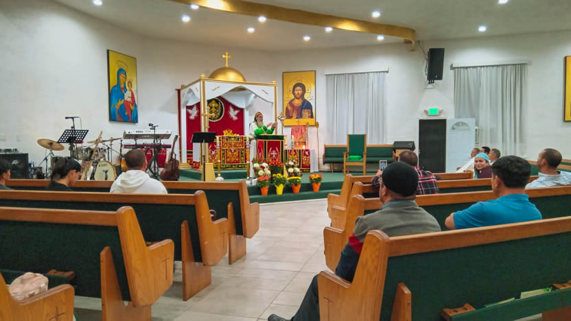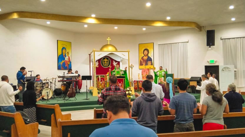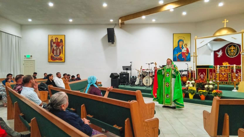 | 15: DIVINA LITURGIA EN LA SEDE DE LA PARROQUIA SAN MIGUEL ARCÁNGEL, EAST RANCHO DOMÍNGUEZ, LOS ÁNGELES. |