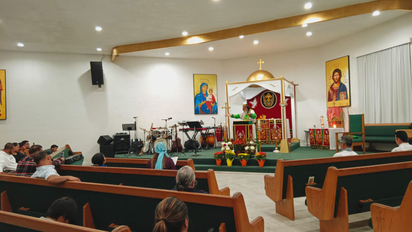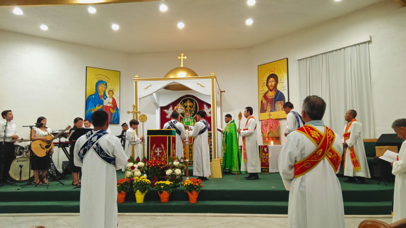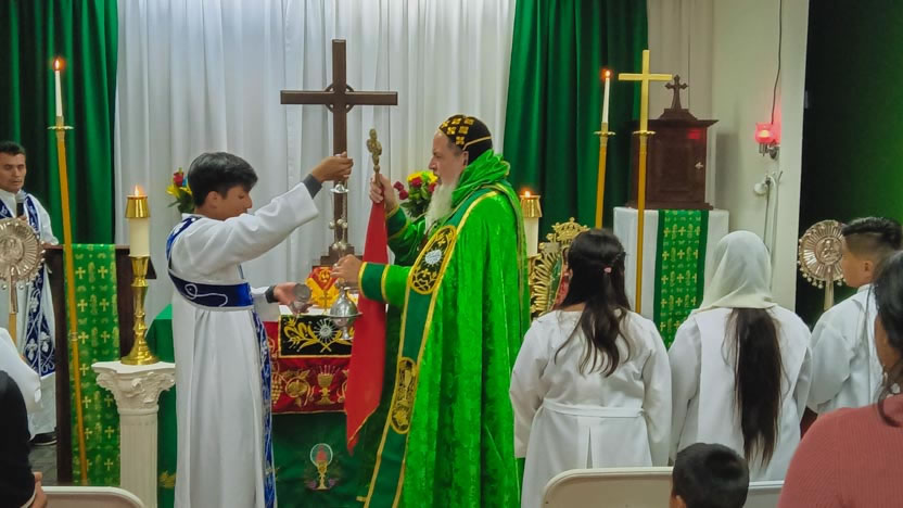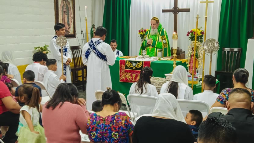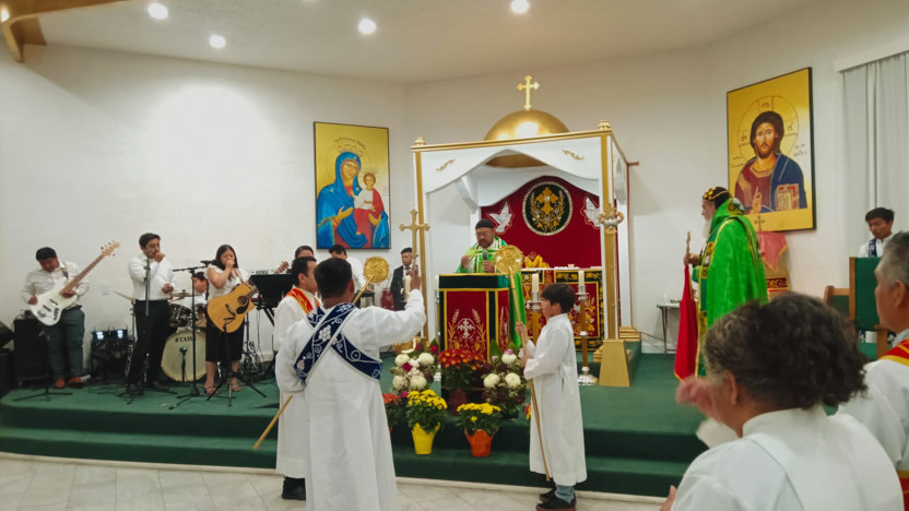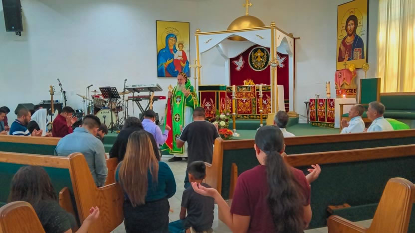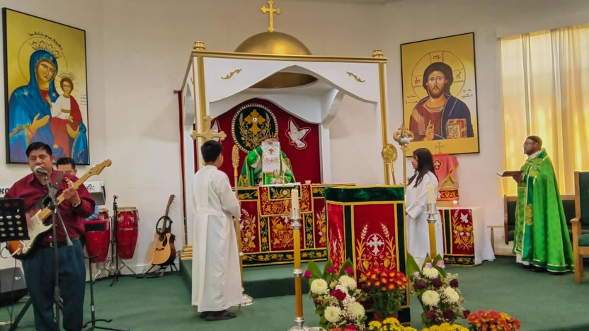La visita a la comunidad Santa María de Guadalupe culminó con la celebración de la divina liturgia, presidida por el arzobispo.