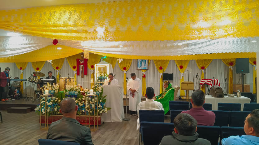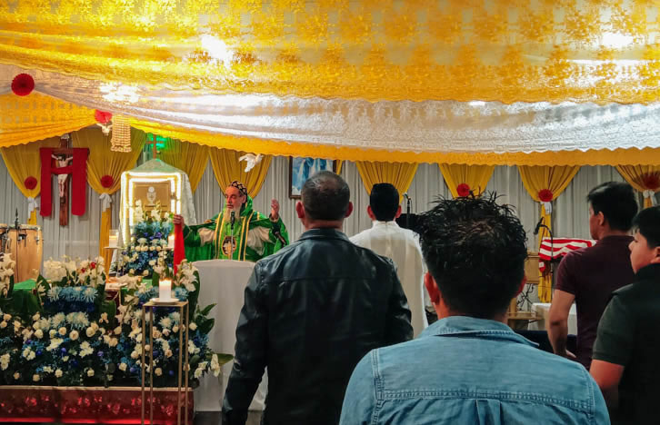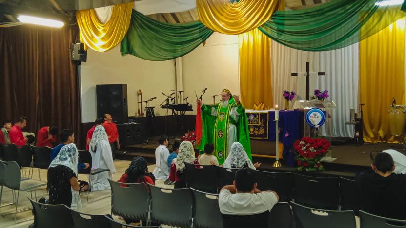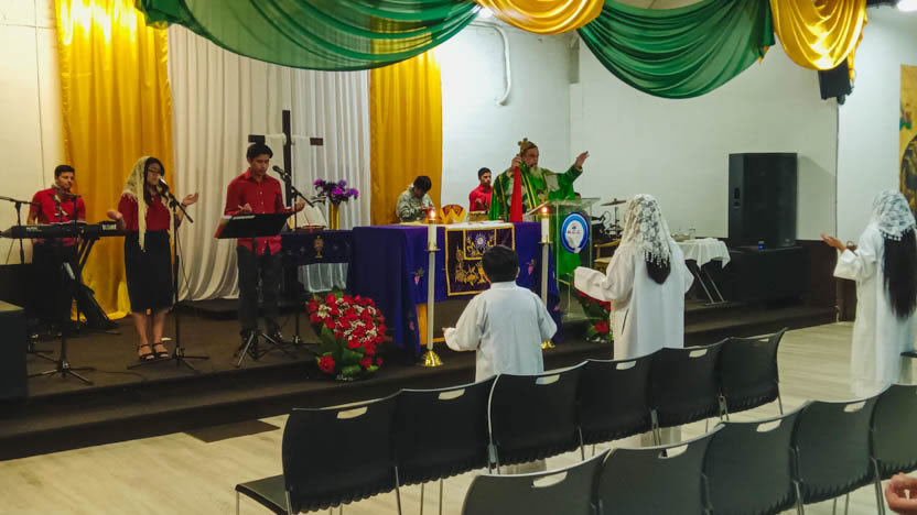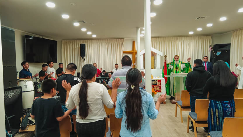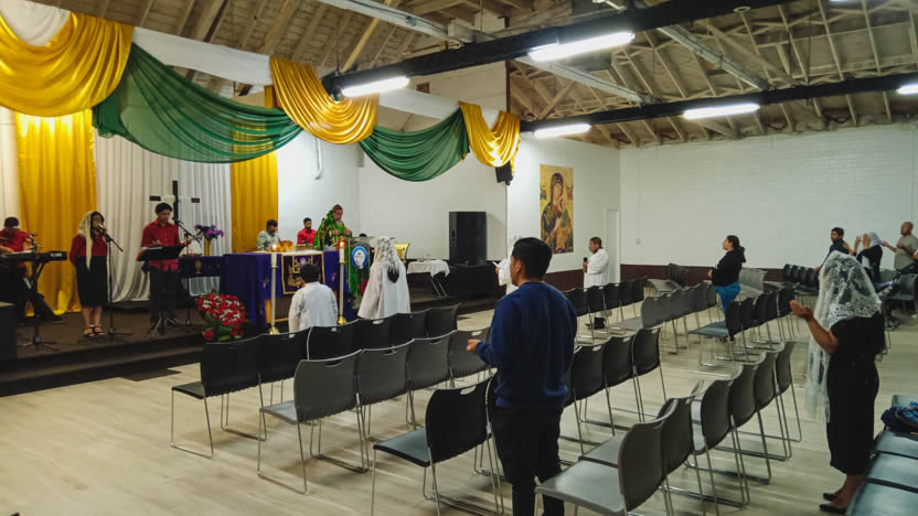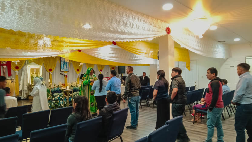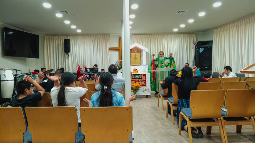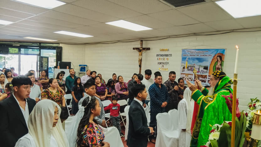 El sábado 4 de noviembre, hacia el mediodía, el arzobispo llegó hasta la sede de la comunidad Santa María de Guadalupe de Riverside, para celebrar la liturgia.