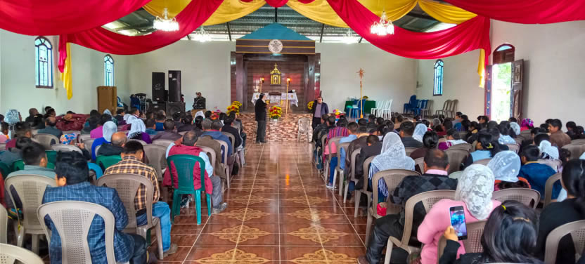 Le recibió el padre Jeiner, encargado de la comunidad, junto a varios fieles, que salieron al encuentro de la comitiva, con cantos y vítores, expresando y identificación con la iglesia. |