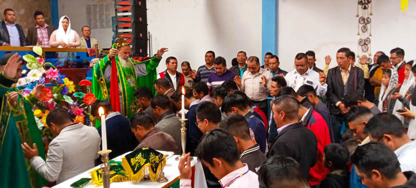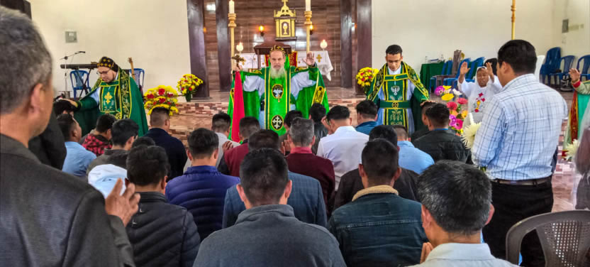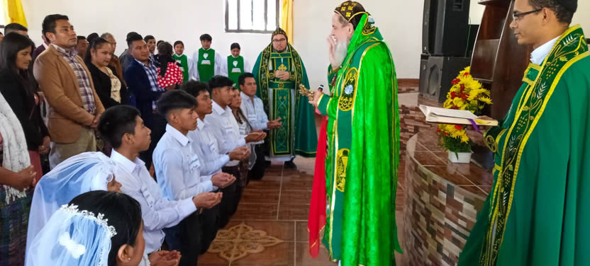 La visita a la comunidad Sagrada Familia de Cunén, culminó con la celebración de la divina liturgia, la cual fue presidida por el arzobispo.