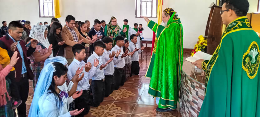 El párroco local, Monje José Wilfredo, preparó a ocho miembros de la parroquia de Cunén, para que fueran confirmados en la crismación y recibieran el envío misionero.