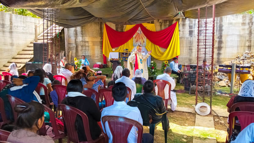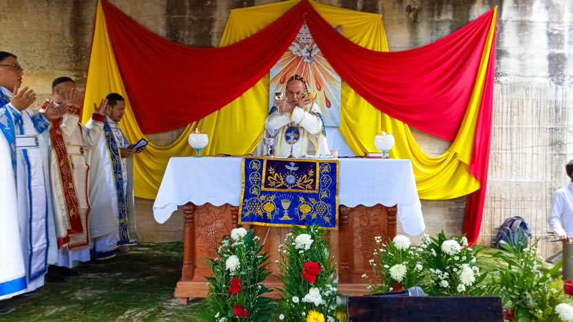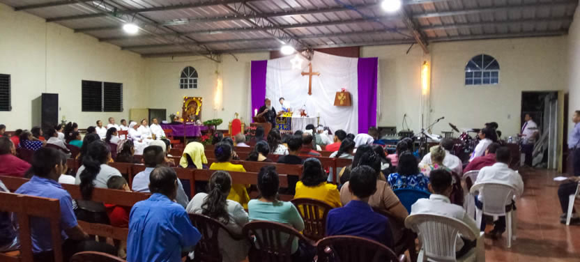 La misma fue presidida por el arzobispo y fue concelebrada por los tres presbíteros que tienen a su cargo cada uno de los centros pastorales: el padre Antonio de La Democracia, el padre Francisco y La Libertad y el padre José Alfredo de Amatenango de Chiapas.