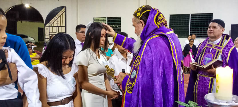 Con ocasión de la visita del arzobispo, también fueron presentados tres jóvenes para que se les administrara la confirmación de la crismación y el envío misionero.