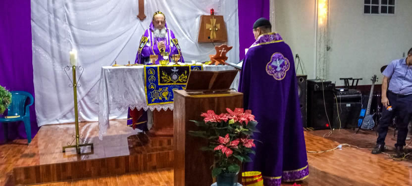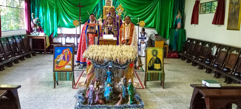Finalmente, el arzobispo presidió la celebración de la divina liturgia de la solemnidad de la Natividad del Señor. concelebraron los padres Rigoberto, Maxi y Fredi.