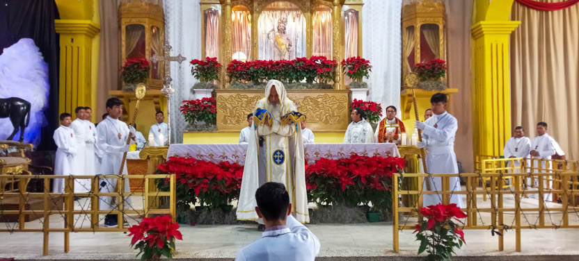 25: DIVINA LITURGIA EN LA SOLEMNIDAD DE LA NAVIDAD, CATEDRAL DE SAN JUAN BAUTISTA, COMALAPA, CHIMALTENANGO.