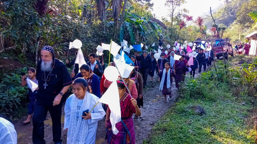 01: BIENVENIDA AL ARZOBISPO A LA COMUNIDAD UNIÓN LAS PALMAS, SANTA CRUZ BARILLAS. |