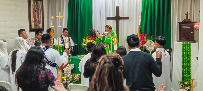 Seguidamente, dieron inicio las celebraciones litúrgicas, con los hermanos de la comunidad de Tzanixnam, Totonicapán, residentes en California.