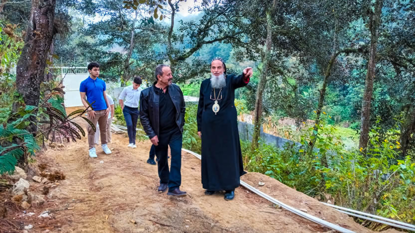 Seguidamente, el arzobispo invitó a la delegación a hacer una breve caminata por el área verde del Centro Arquidiocesano que se está construyendo en Santiago Sacatepéquez.
