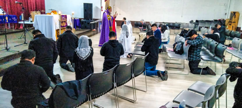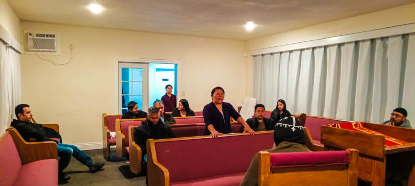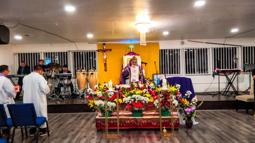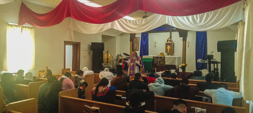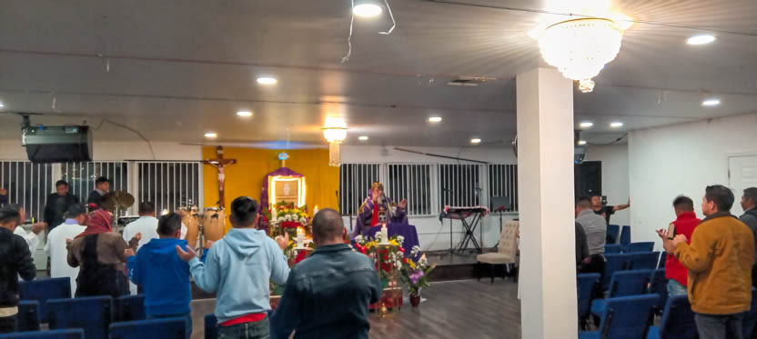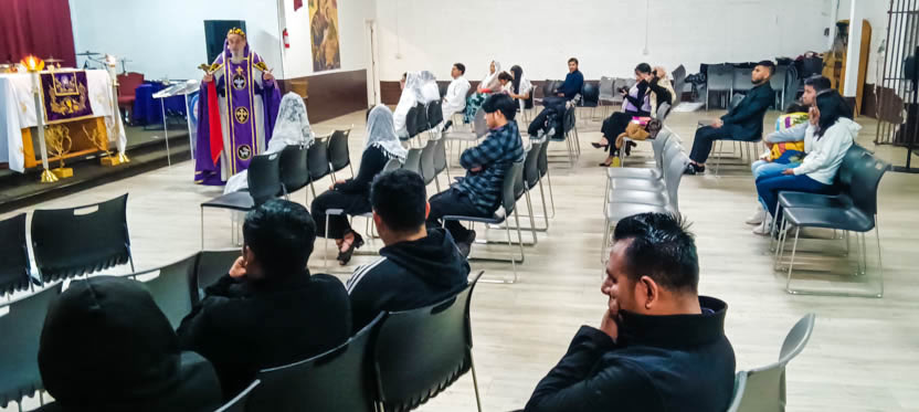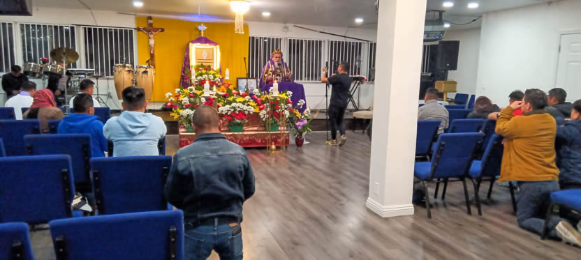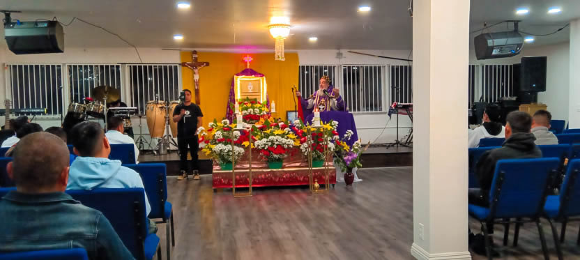 El miércoles 14, ya bien entrada la noche, el arzobispo se dirigió hasta la sede de la comunidad Pacto Divino, ubicada en el centro de Los Ángeles, para realizar la visita mensual.