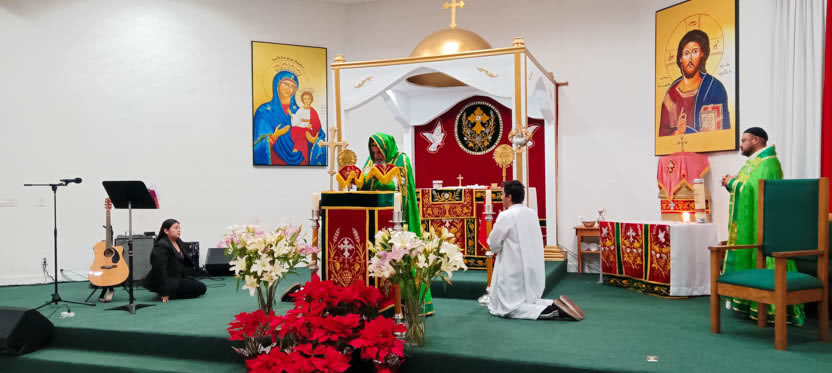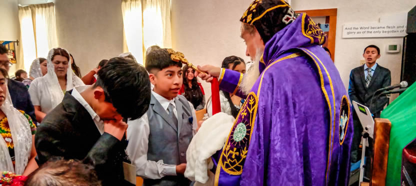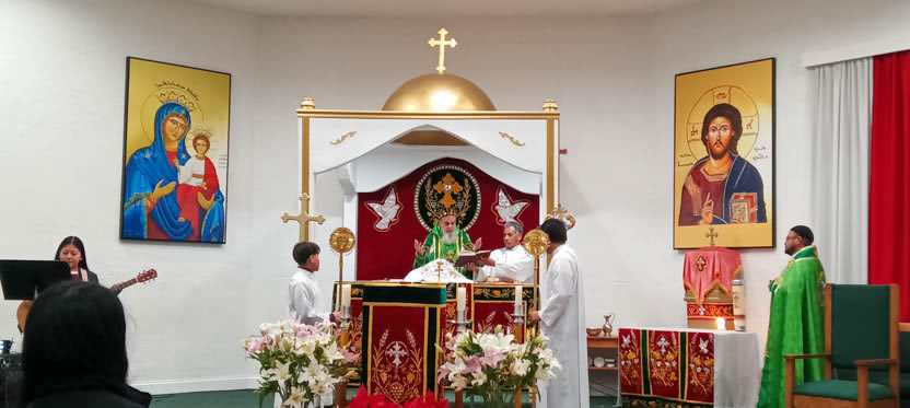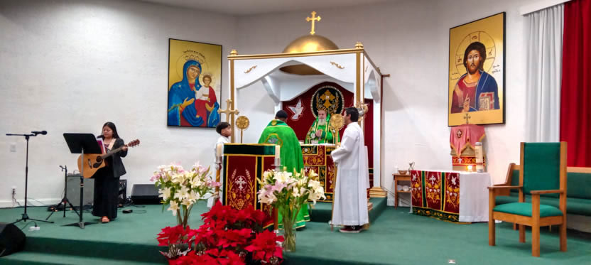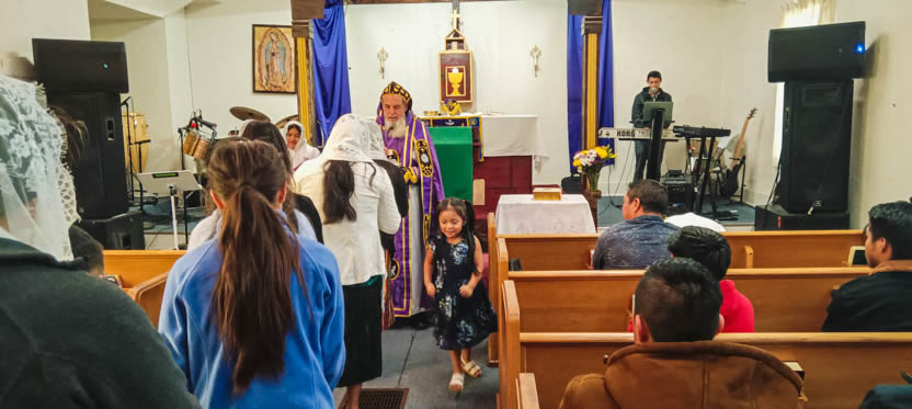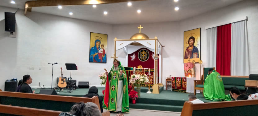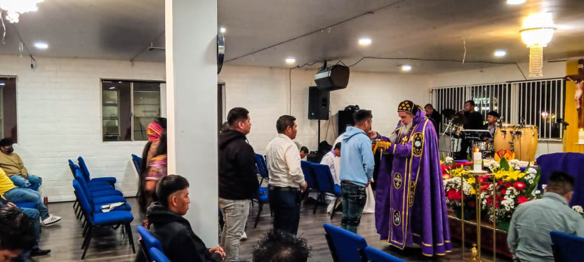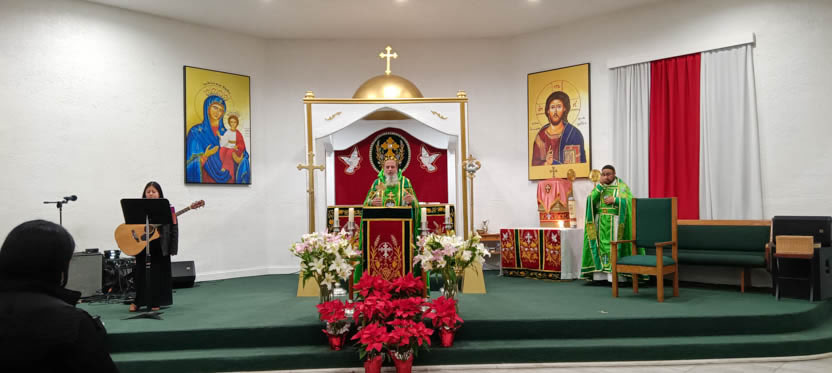 Finalmente, el arzobispo presidió la celebración de la divina liturgia, con los miembros de la comunidad de el Pescador, de la ciudad de Los Ángeles.