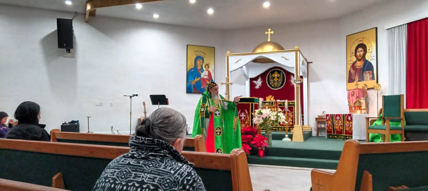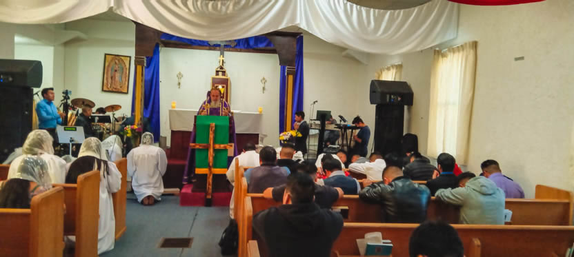 La visita pastoral a la comunidad San Pedro Apóstol de Iowa concluyó con la celebración de la divina liturgia, presidida por el arzobispo, con la activa participación de todos los fieles.