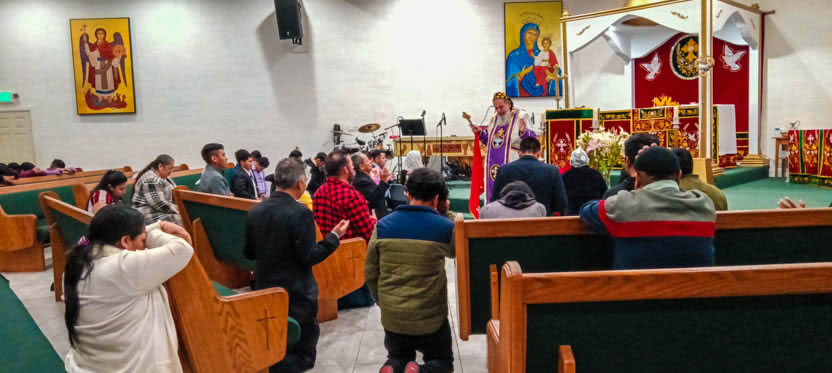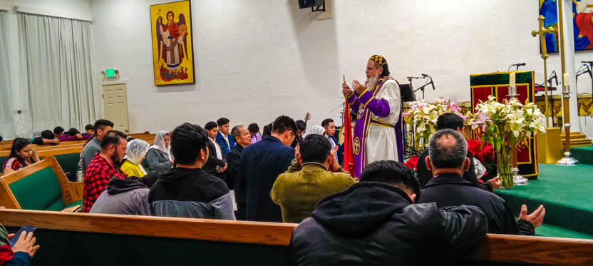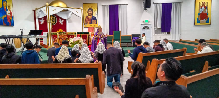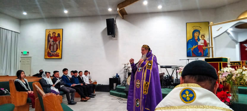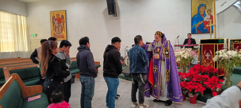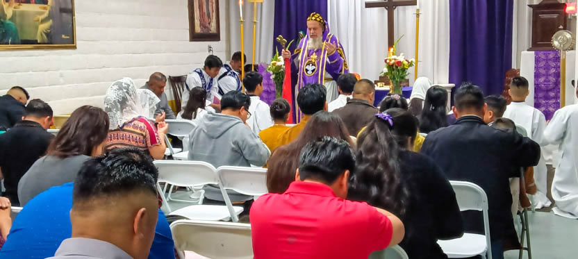 Después de la homilía y la oración, el arzobispo presidió la celebración solemne de la divina liturgia en la comunidad Santa María de Guadalupe de Riverside.