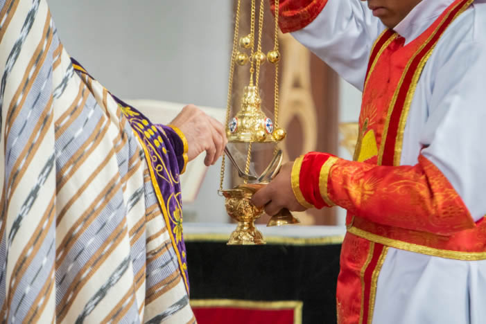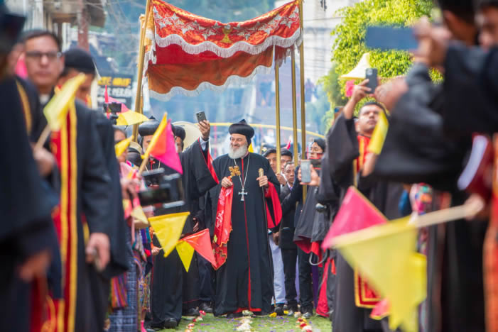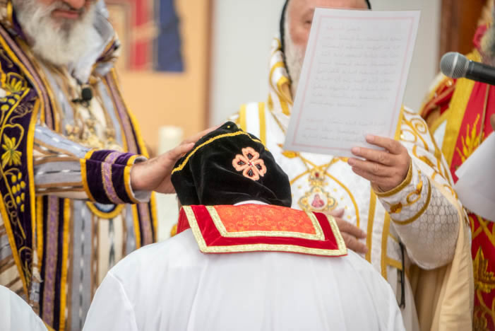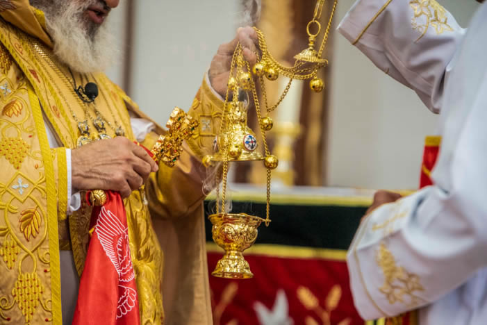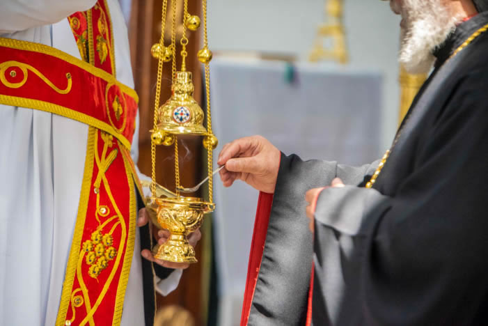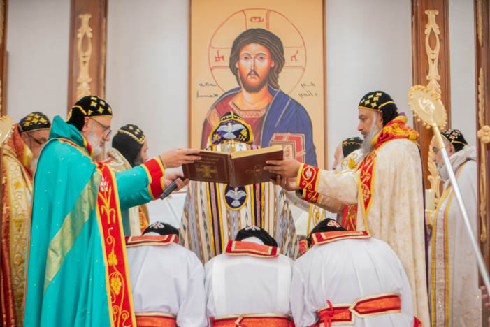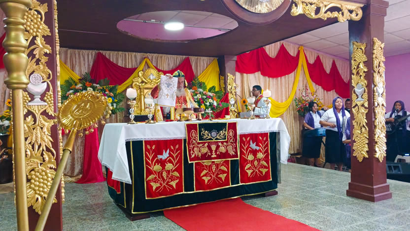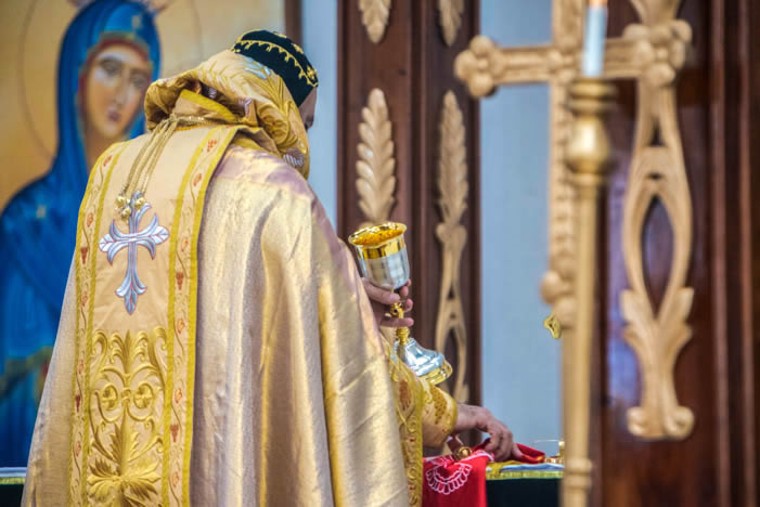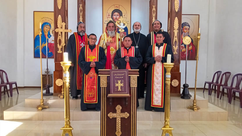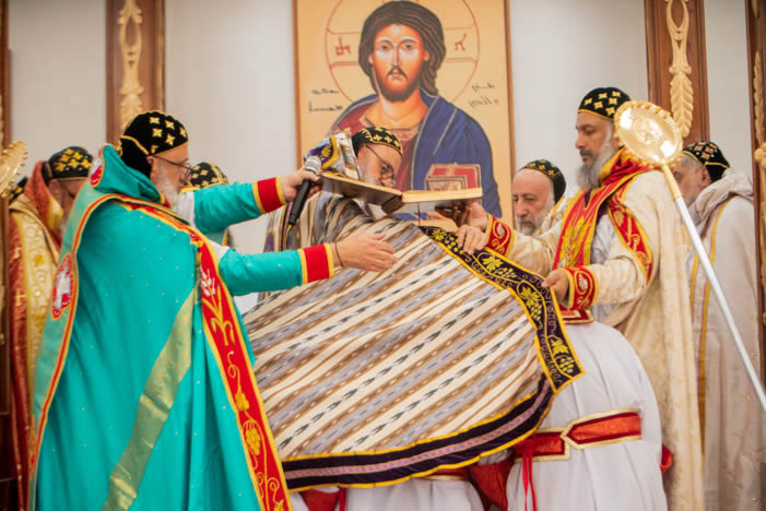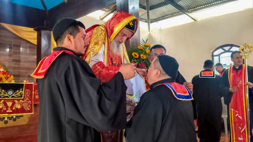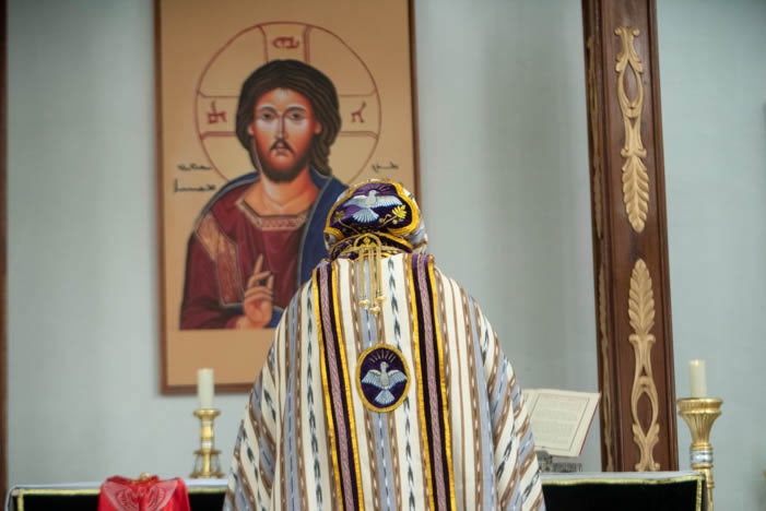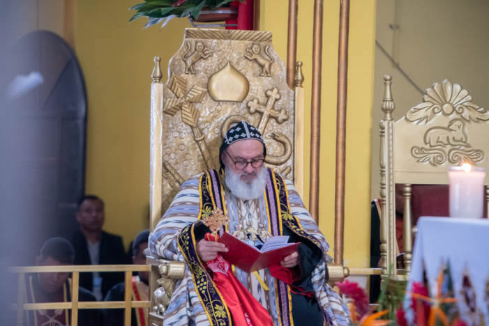 Antes de la comunión con los divinos misterios, como está previsto por el ritual de la Iglesia Siro Ortodoxa, el arzobispo presidió los ritos sacramentales de entronización de Su Gracia Mor Marcos Caicedo, como primer obispo de la diócesis del occidente.
