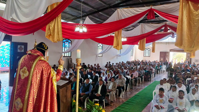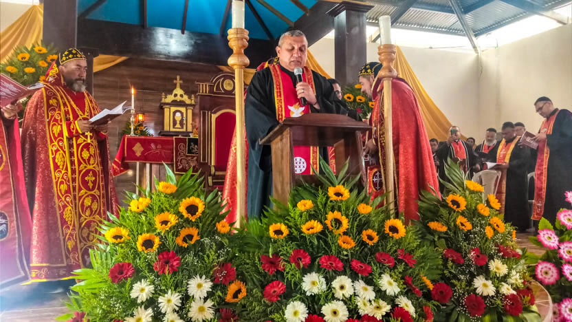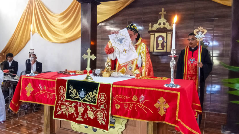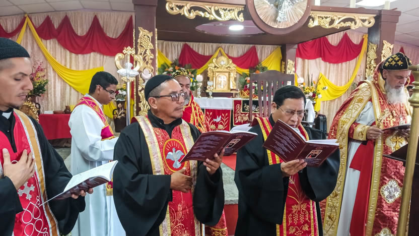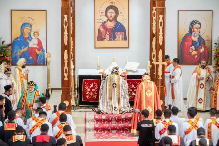 Concluidos los ritos de entronización del nuevo obispo, por petición de éste, Mor Santiago Eduardo, presidió los ritos de conclusión de la comunión.