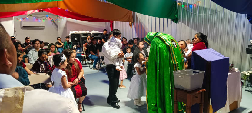 | 28: BENDICIÓN DE LAS FAMILIAS PARTICIPANTES, DE LA COMUNIDAD LA VOZ DEL ESPÍRITU SANTO, GADSDEN. |