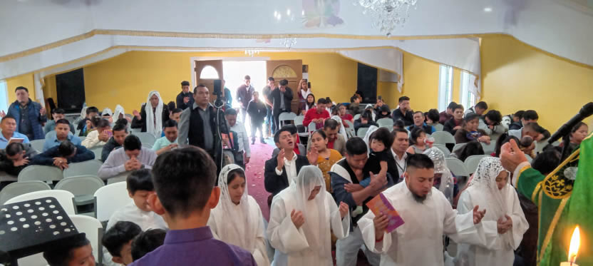 Los hermanos participaron con gran devoción y numerosos, comenzando con los cinco niños que recibieron los sacramentos de la iniciación, se acercaron a comulgar en los divinos misterios. |