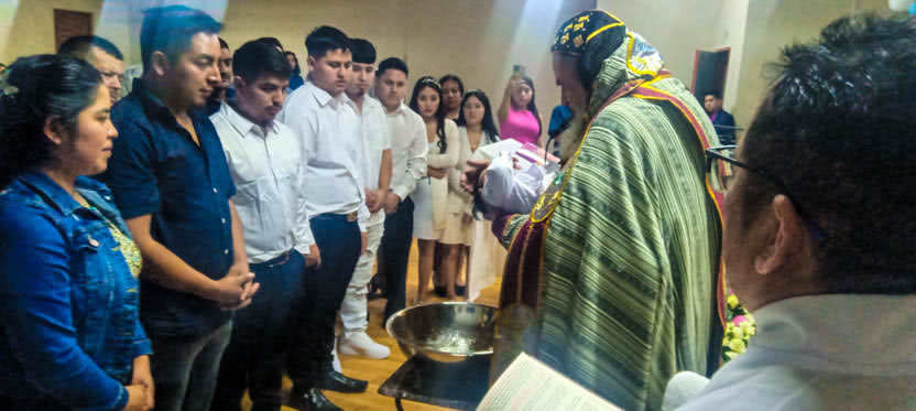 Los jóvenes Amílcar, Abimael, Jorge, Mario y las señoritas Mariana y Elsie, provenientes de diferentes lugares, se dieron cita en Dalton, para recibir la confirmación de la crismación y el envío misionero.