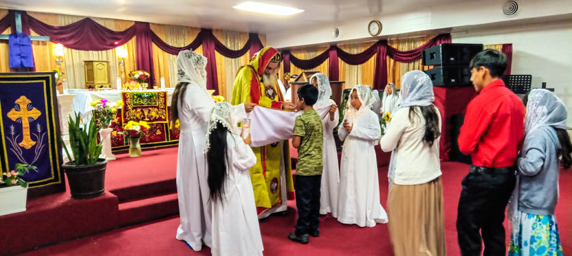 Dentro del marco de las celebraciones litúrgicas, los padres del niño Liham lo presentaron para que le fueran administrados los sacramentos de la iniciación cristiana.