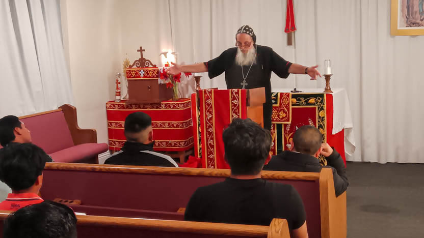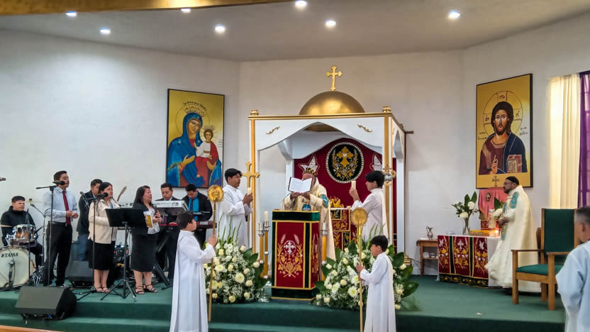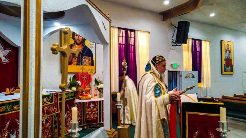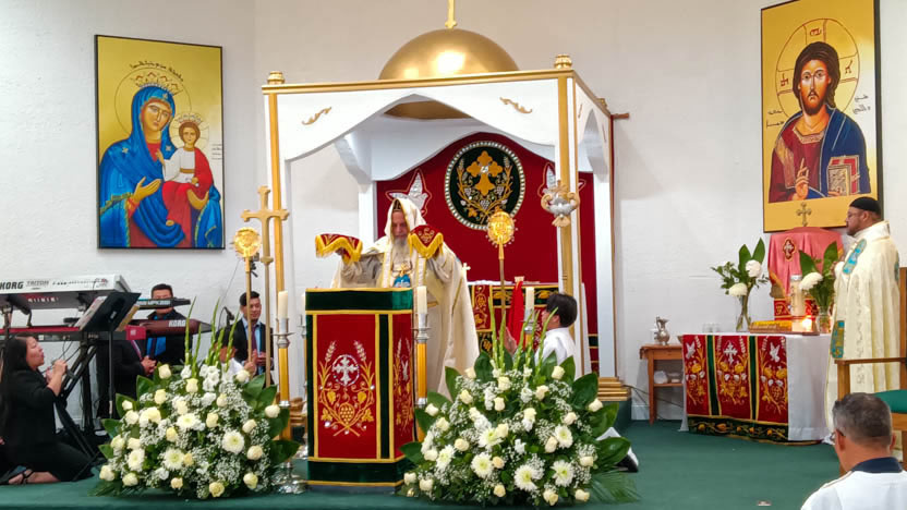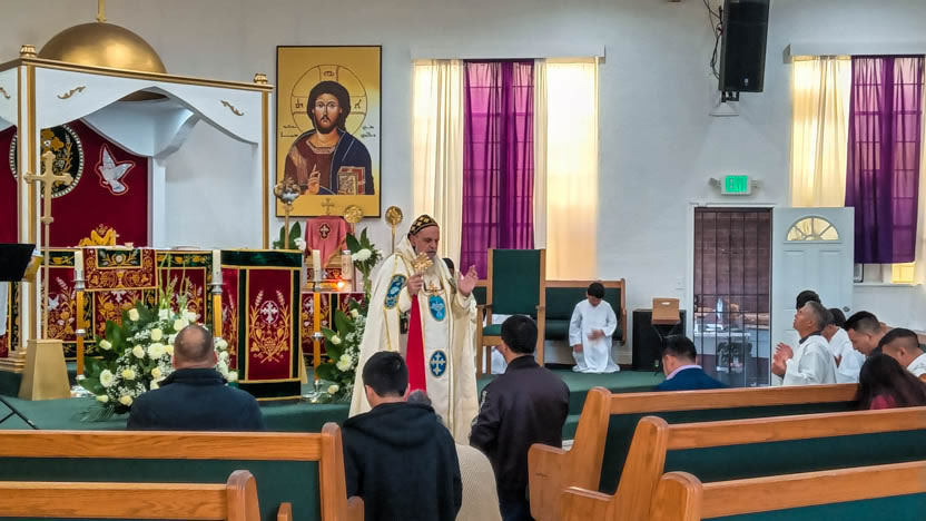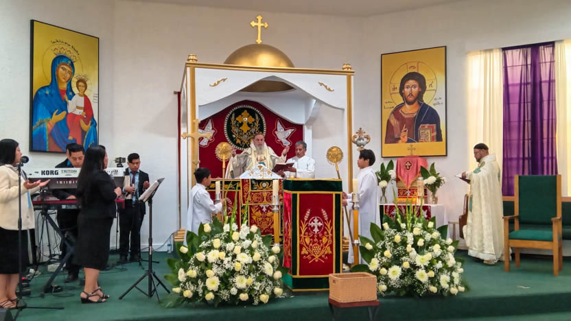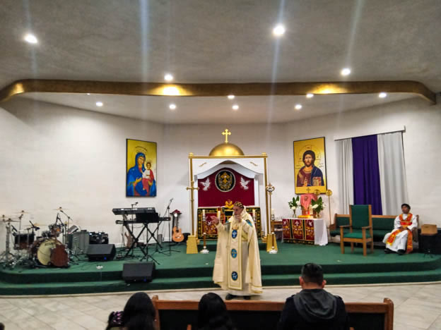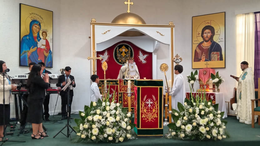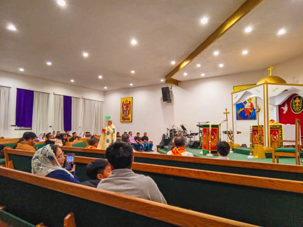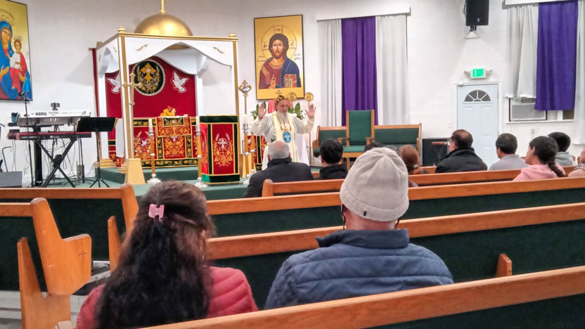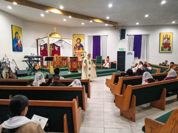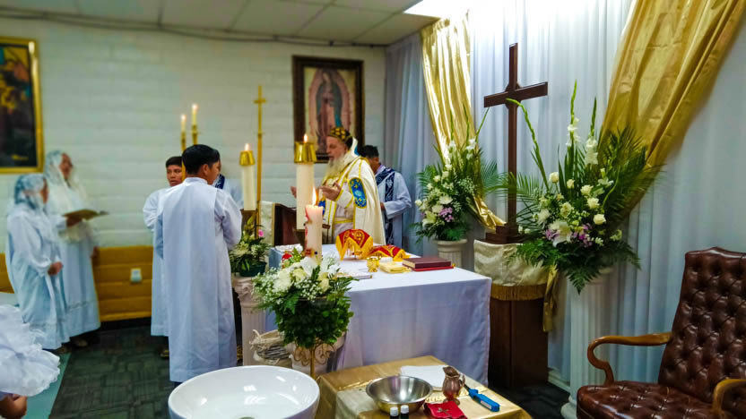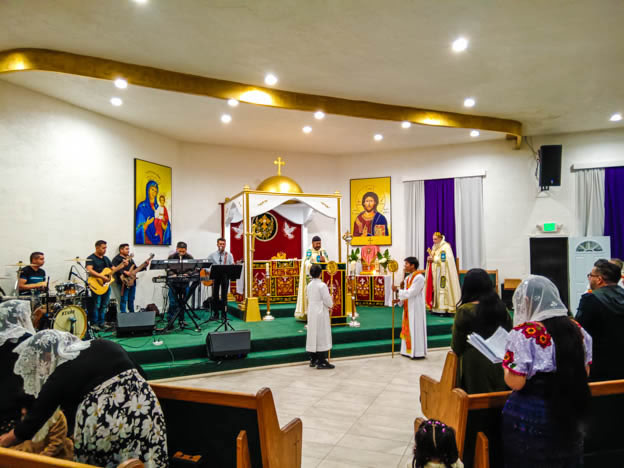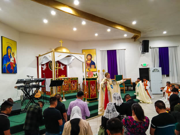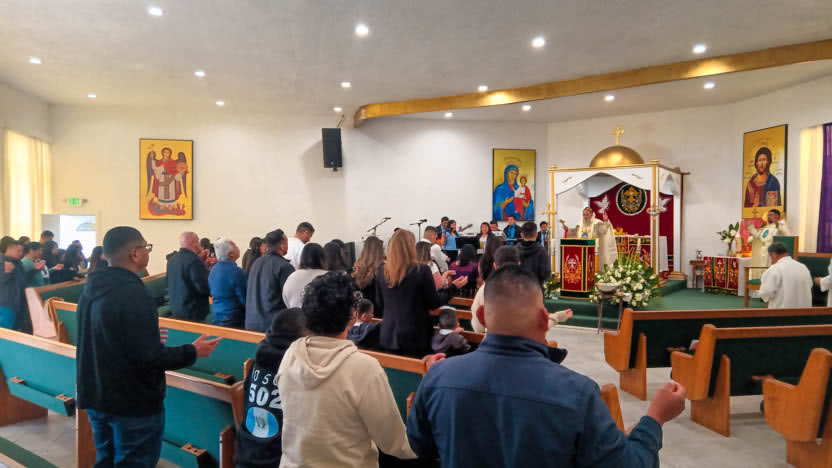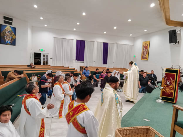 | 13: DIVINA LITURGIA EN LA SEDE DE LA PARROQUIA DE SAN MIGUEL ARCÁNGEL, EAST RANCHO DOMÍNGUEZ. |