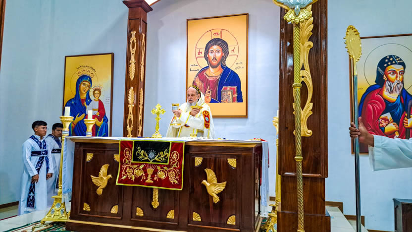 La visita, en medio de un ambiente de gozo y de fiesta, concluyó con la celebración de la divina liturgia del quinto domingo de pascua, la cual fue presidida por el arzobispo.