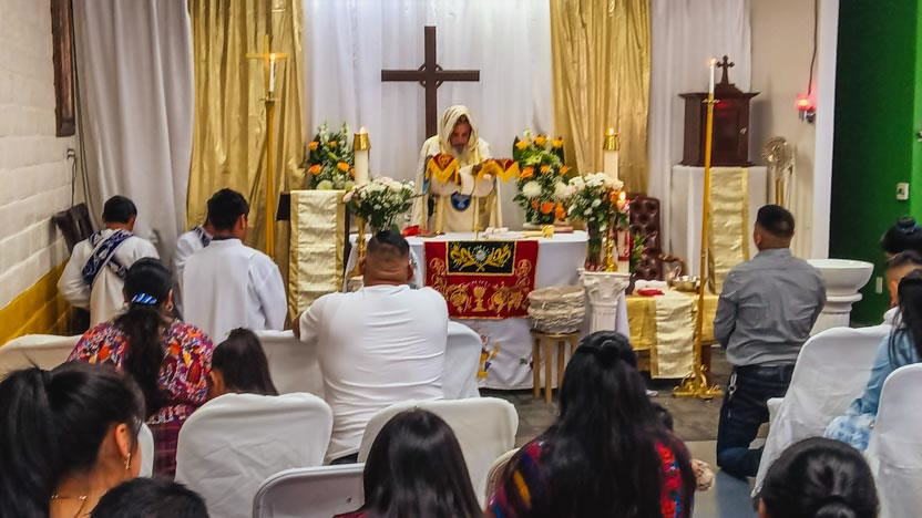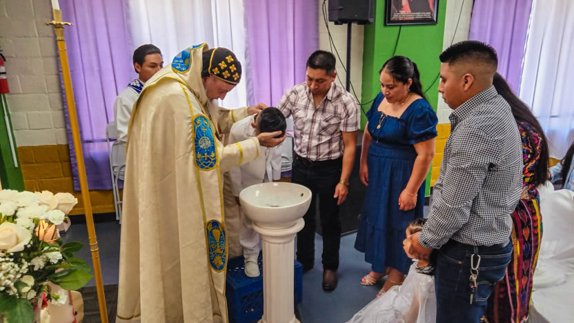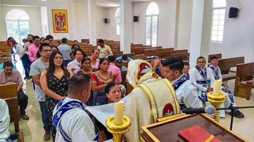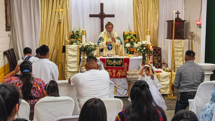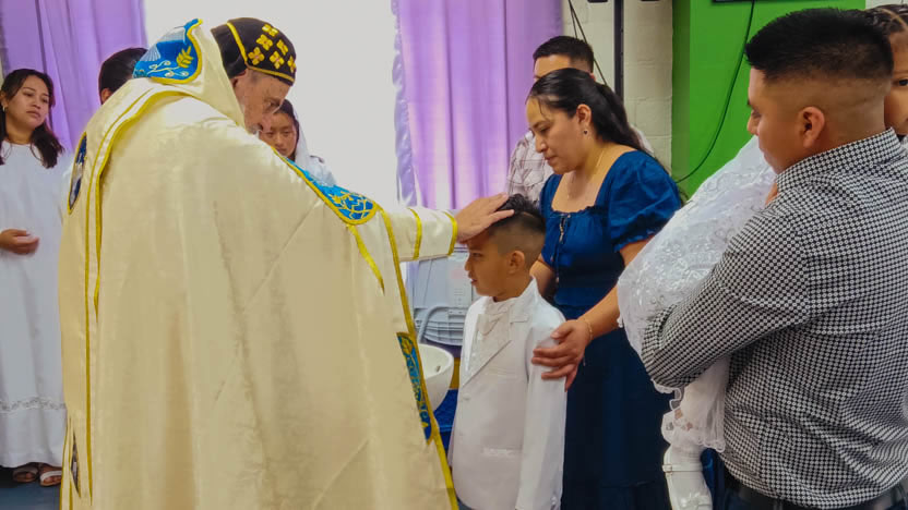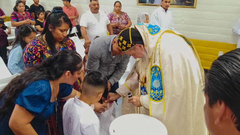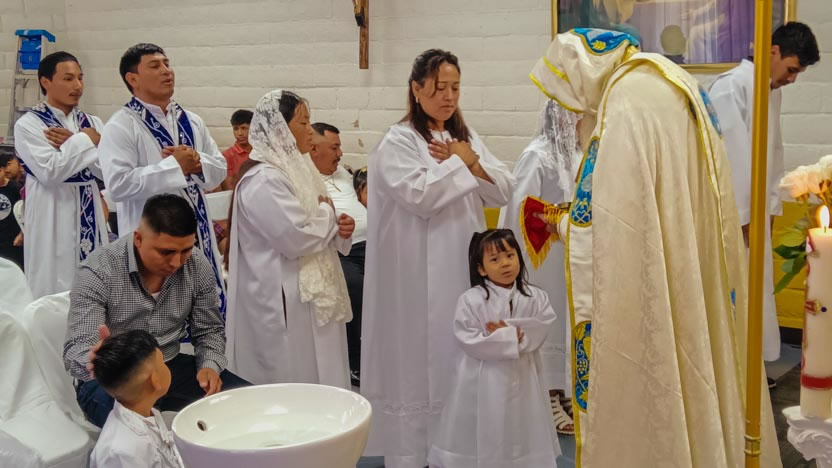 Después de la homilía, fueron administrados los sacramentos de la iniciación cristiana a Macario Alexis y Ana Belinda, hijos de una familia miembro de la comunidad.