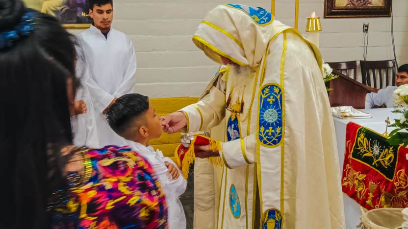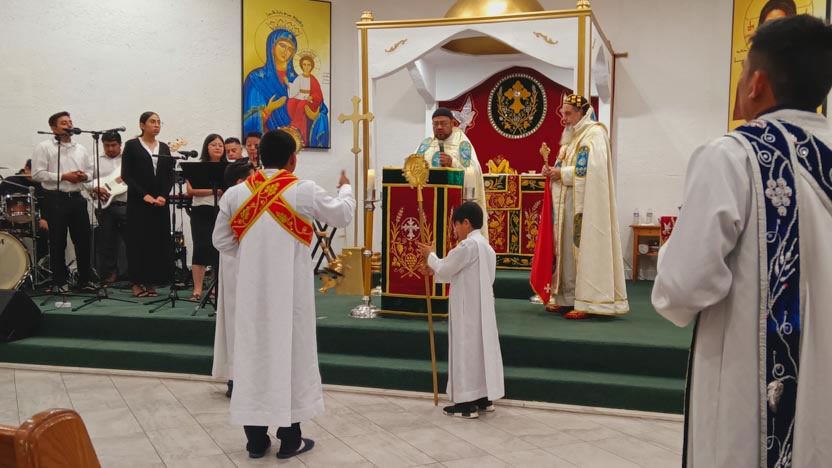 Seguidamente, el arzobispo presidió la celebración de la divina liturgia, en la que participaron con mucha devoción los hermanos que estaban acompañando a quienes fueron bautizados.
