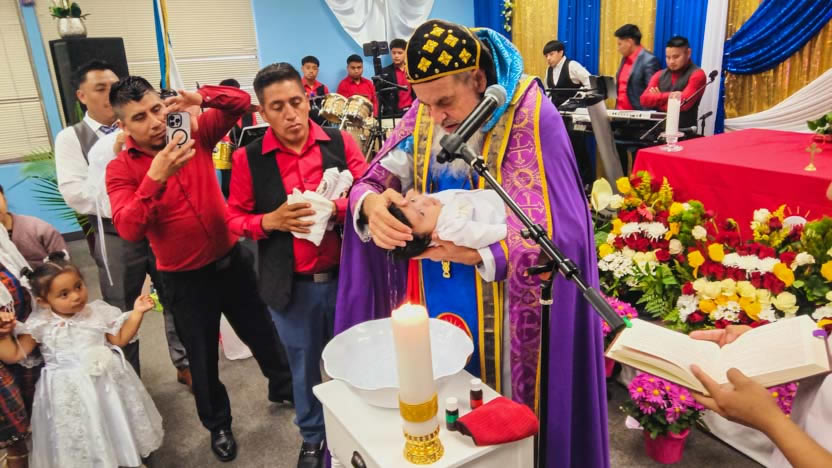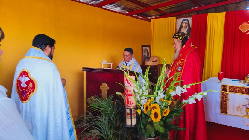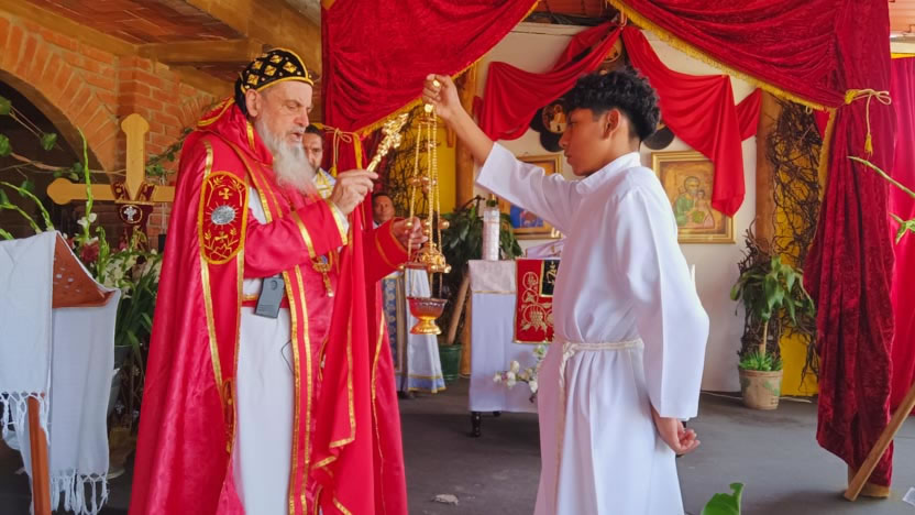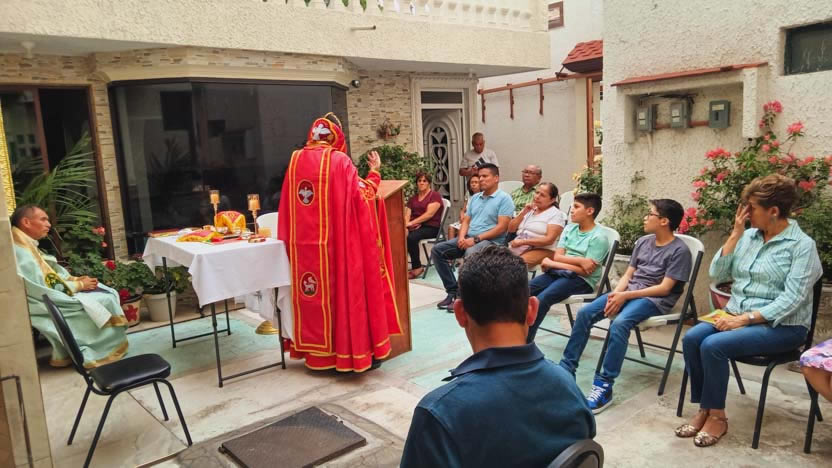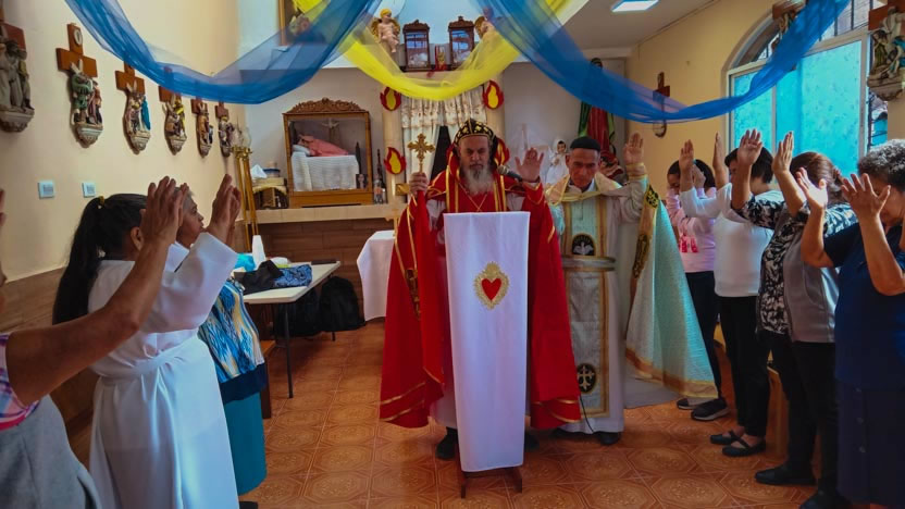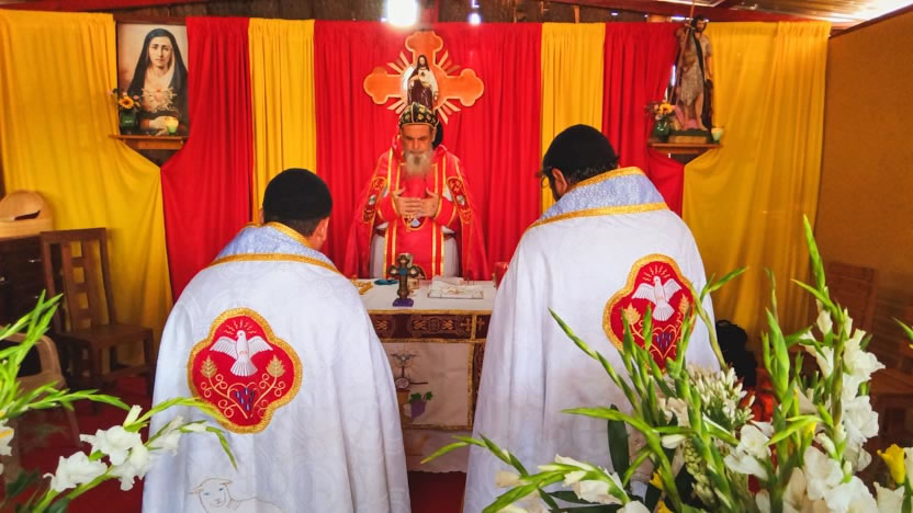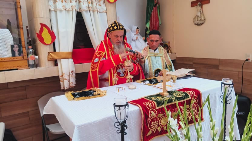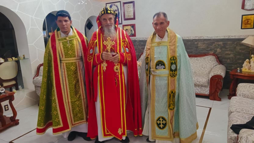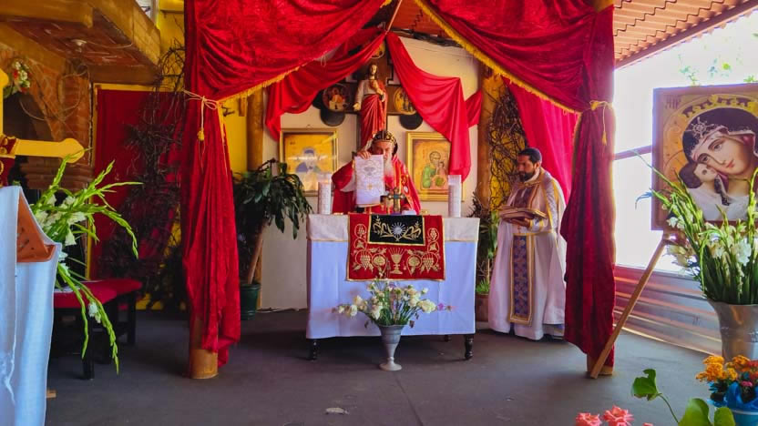 Después de la homilía, se continuó con la celebración de la divina liturgia, la cual fue presidida por el arzobispo y concelebrada por los tres presbíteros de la Vicaría.
