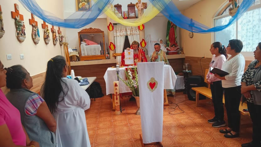 El sábado 25 de mayo, por la mañana, el arzobispo llegó hasta la sede de la pequeña parroquia de la Natividad de la Virgen María, Las Bombas, Ciudad de México.