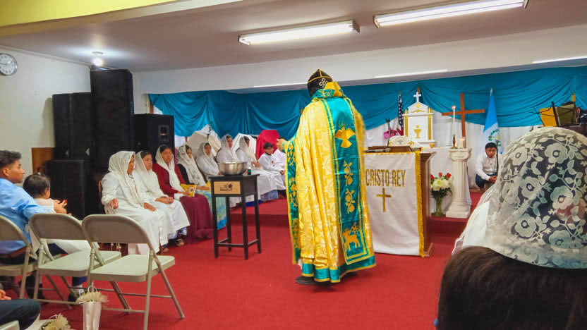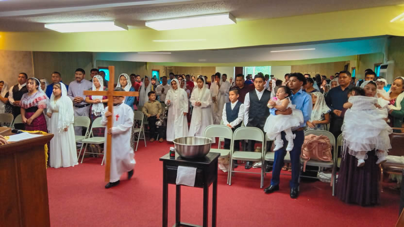Los hermanos presentaron al niño Alan Reynaldo, hijo del hermano Guadalupe, originario de El Quetzal, Barillas, para que recibiera los sacramentos de la iniciación cristiana.